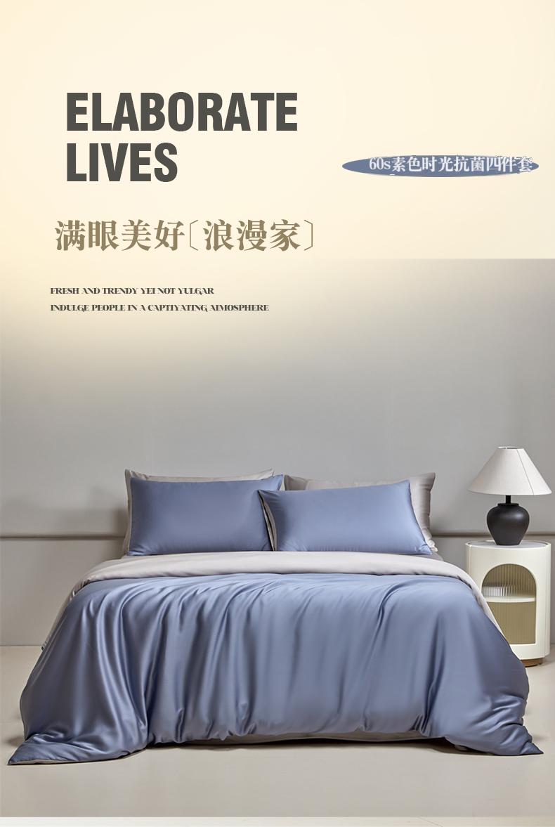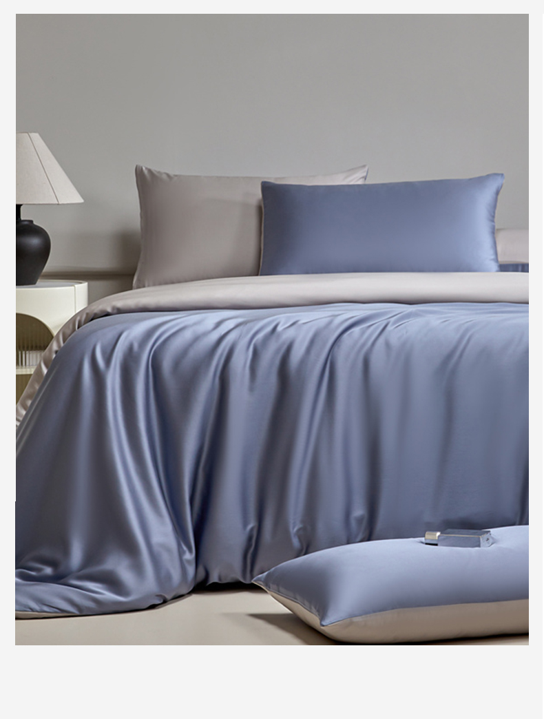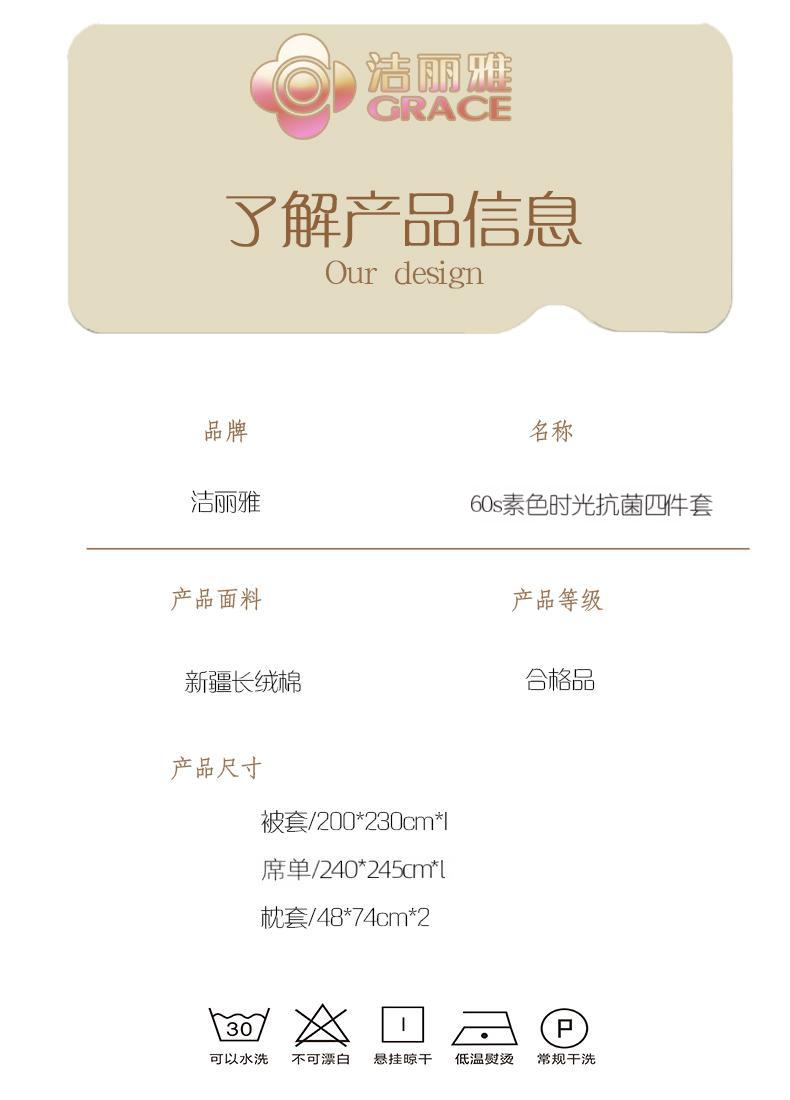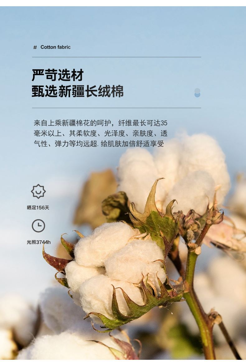 被套:200*230cm 床单:240*245cm 枕套:48*74cm*2 面料:新疆长绒棉 执行标准:GB/T22796-2021 安全类别:GB18401-2010 B类 1.甄选新疆长绒棉为原料,以60支高密缎纹工艺织就简约而不简单的品质生活。面料通过双面精梳处理,触感如细腻沙粒般柔滑且带有天然骨感,在光照下流淌着温润的缎面光泽。经纬密度达到300T,形成细腻紧密的肌理,既保留纯棉的透气特性,又拥有丝质般的垂坠感。