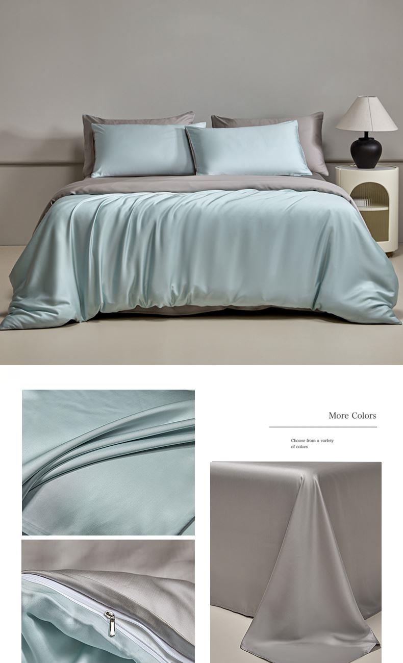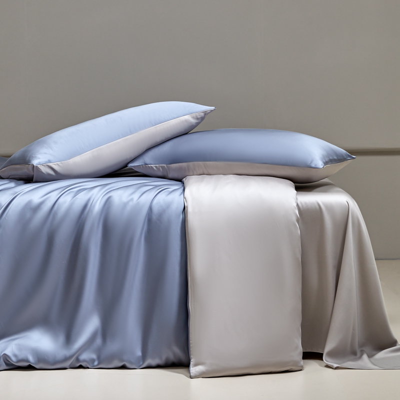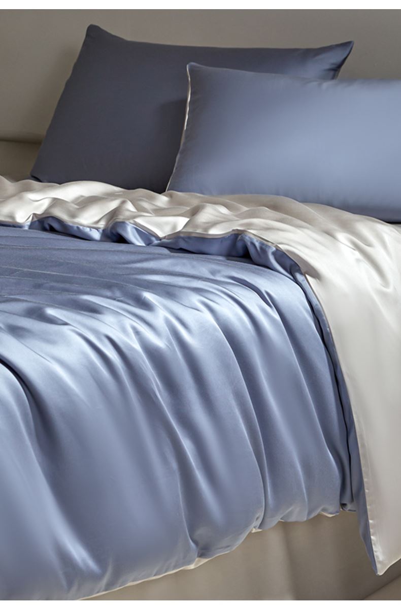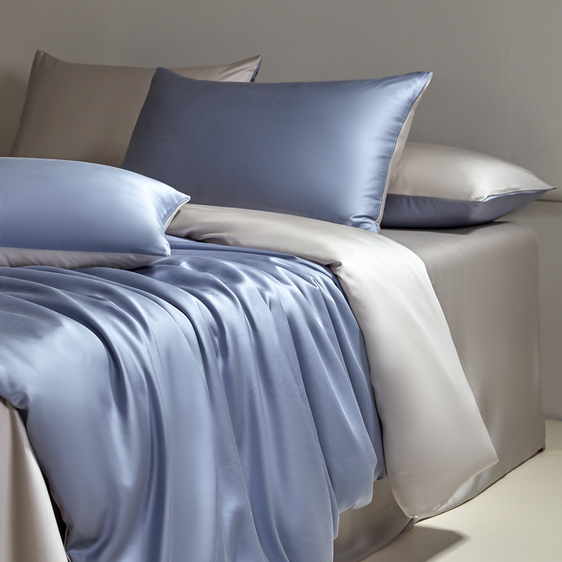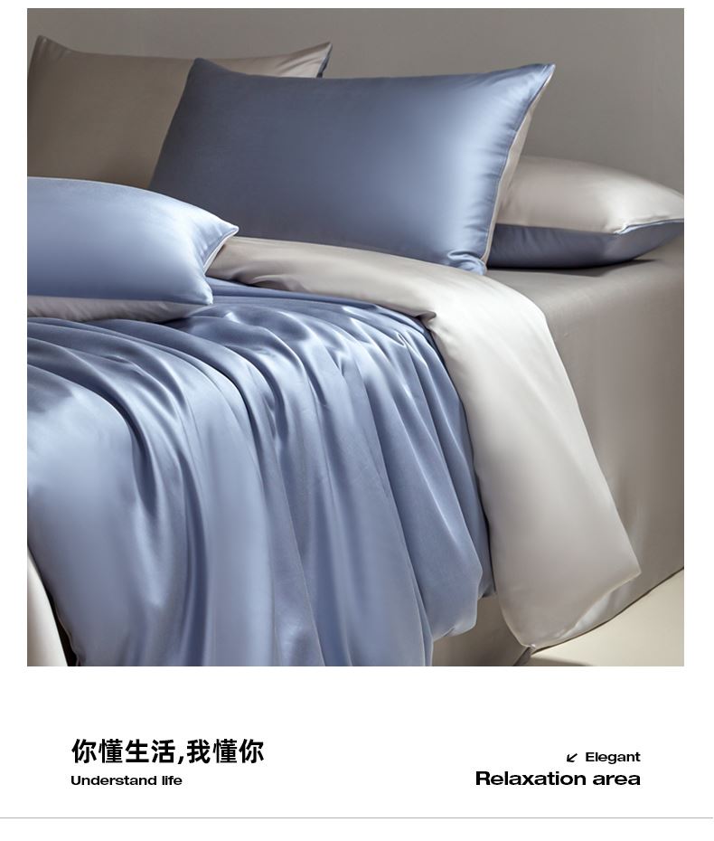 被套:200*230cm 床单:240*245cm 枕套:48*74cm*2 面料:新疆长绒棉 执行标准:GB/T22796-2021 安全类别:GB18401-2010 B类 1.甄选新疆长绒棉为原料,以60支高密缎纹工艺织就简约而不简单的品质生活。面料通过双面精梳处理,触感如细腻沙粒般柔滑且带有天然骨感,在光照下流淌着温润的缎面光泽。经纬密度达到300T,形成细腻紧密的肌理,既保留纯棉的透气特性,又拥有丝质般的垂坠感。