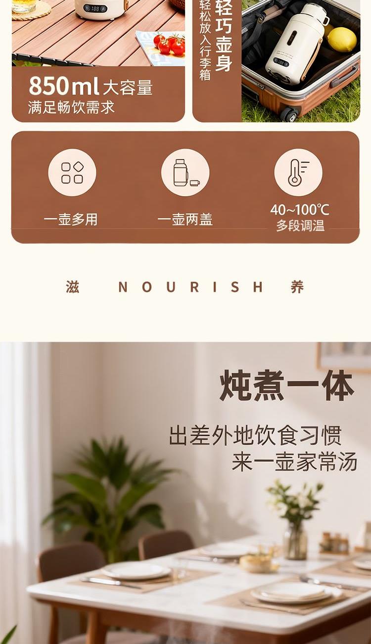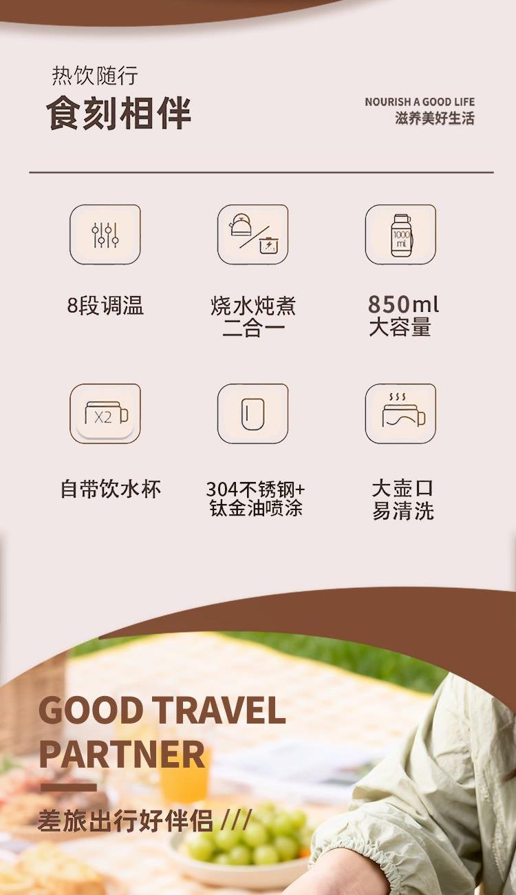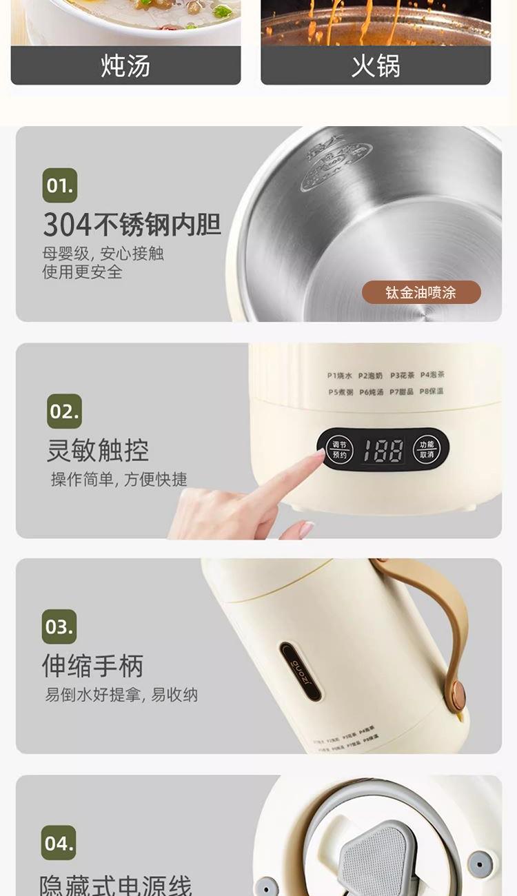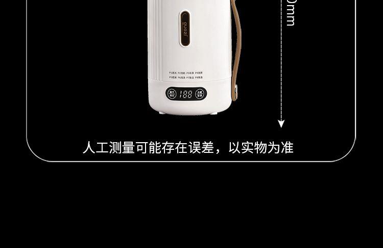 容 量:850ml 材 质:304内胆+钛金油喷涂+PP+PC 额定电压:220v 额定功率:950w 额定频率:50Hz 尺 寸:D115×270mm