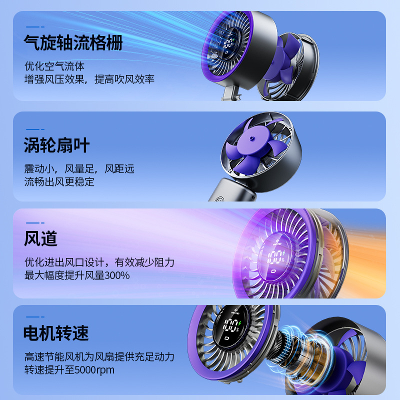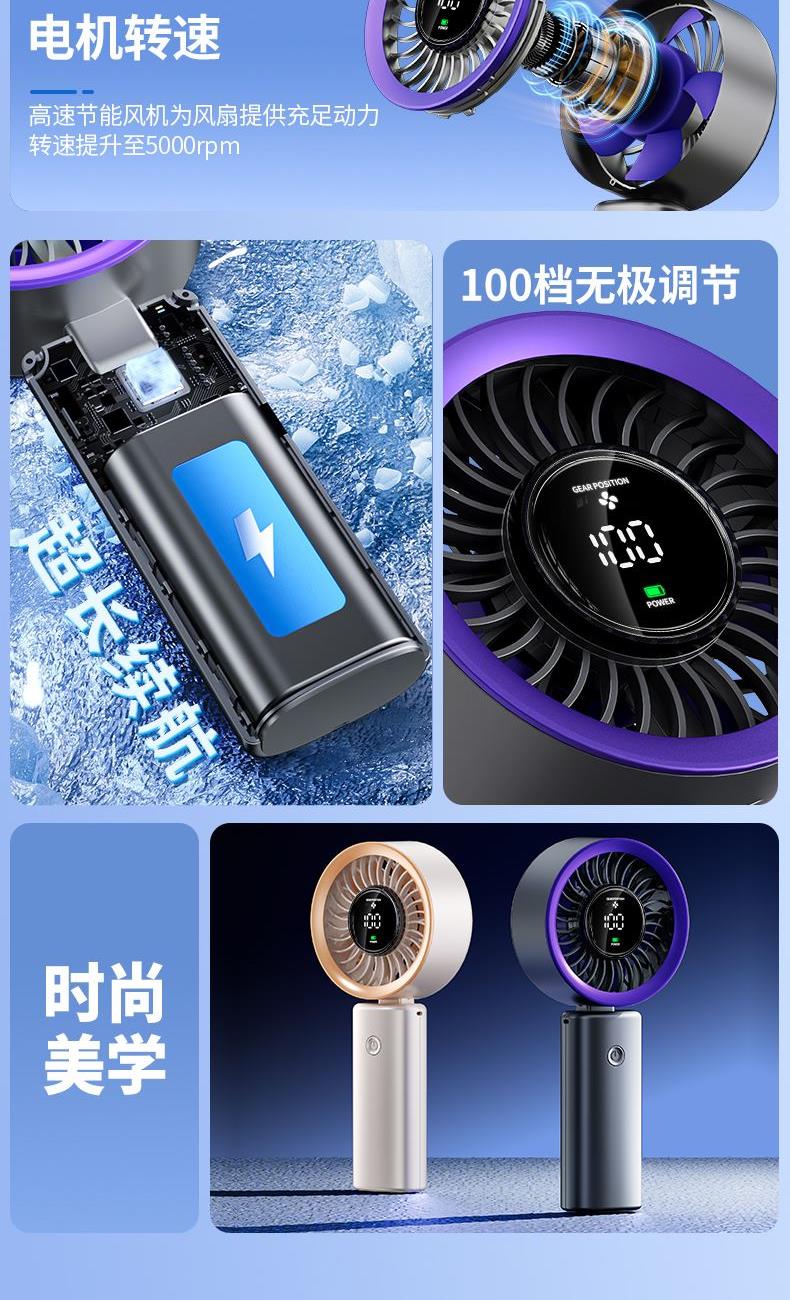 *涡轮扇叶音轻风大,3600毫安 *智能数显,100档涡轮强劲动力 *5000转快速降温,可折叠桌面 *支持小批量定制LOGO