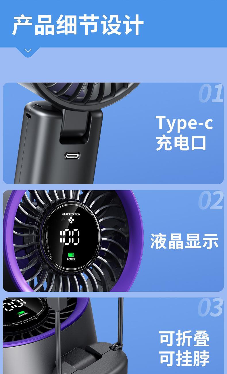 新款折叠大风力手持风扇可挂脖可桌面F30