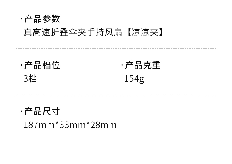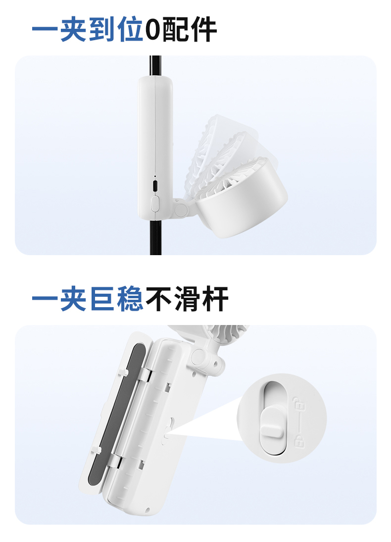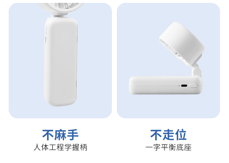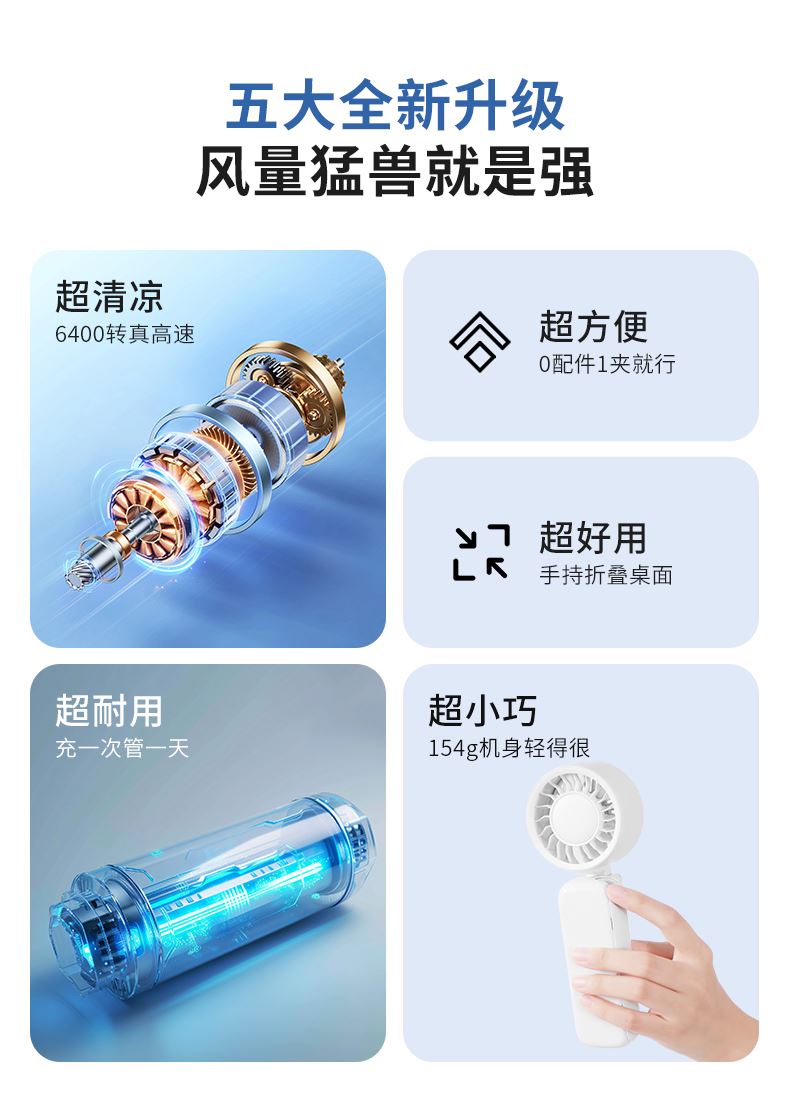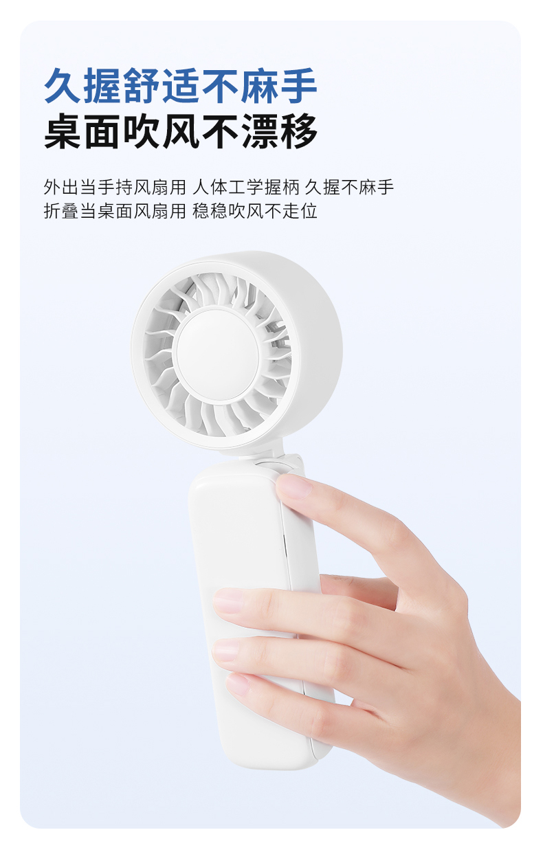 *6500RMP大风力,3档自由调节 *可手持、可夹雨伞、可折叠,等多实用场景 *支持小批量定制LOGO