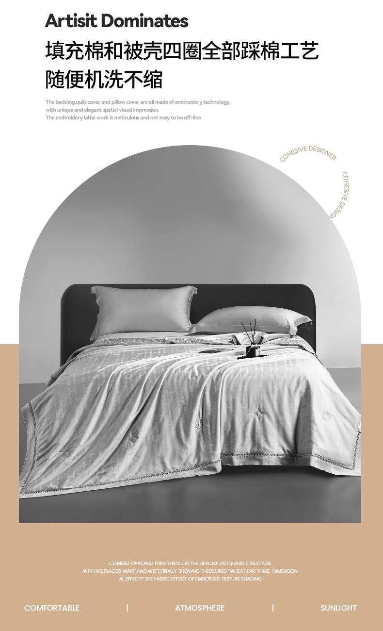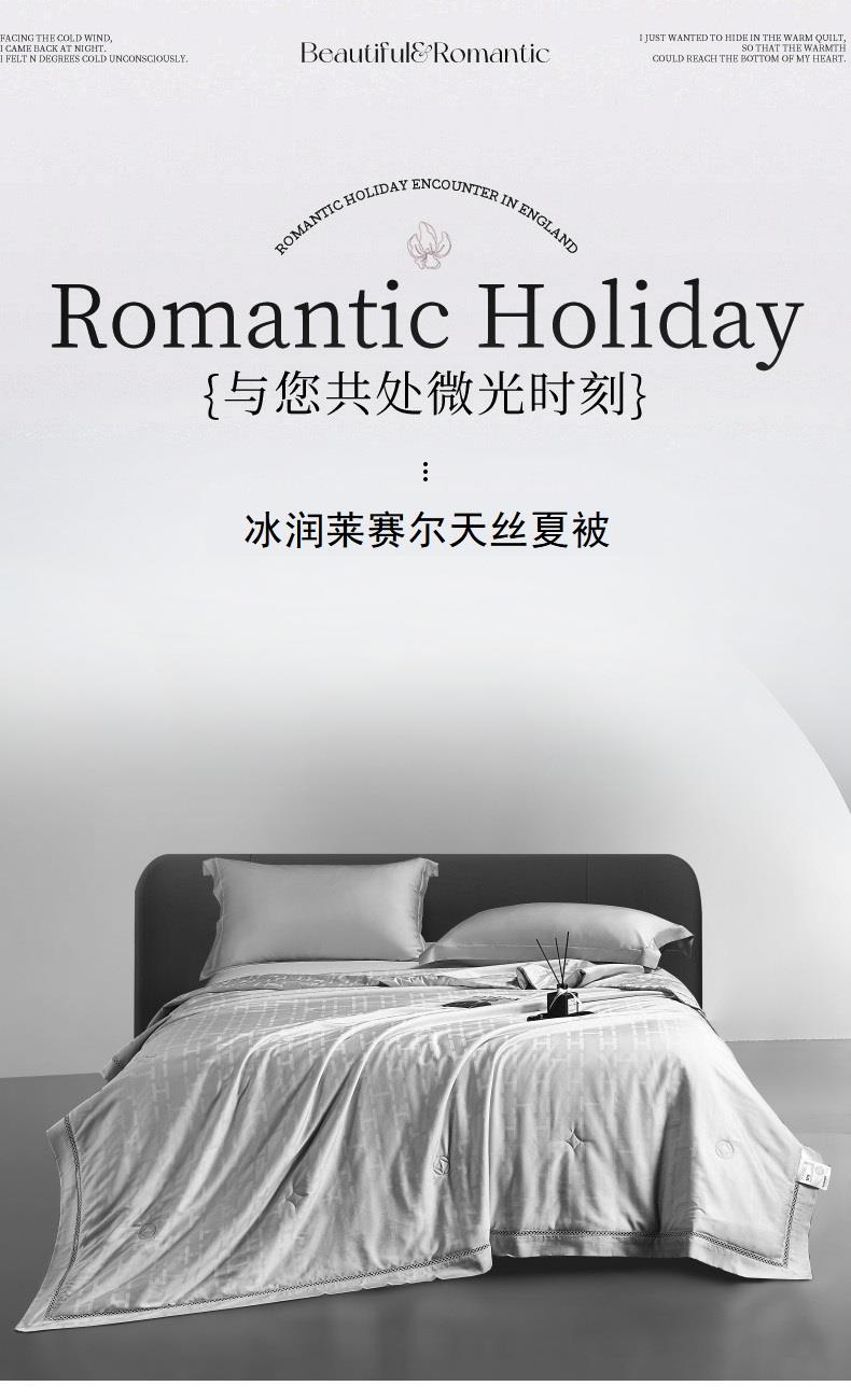 面料材质:莱赛尔纤维 填充:超细旦莱赛尔纤维 产品规格:200*230cm 克重:1900g 产品特点: 享爱蚕丝柔滑,享受拥享睡眠。会呼吸的面料,舒适软糯,躺在床上的一瞬间,感受渗透全身的惬意。