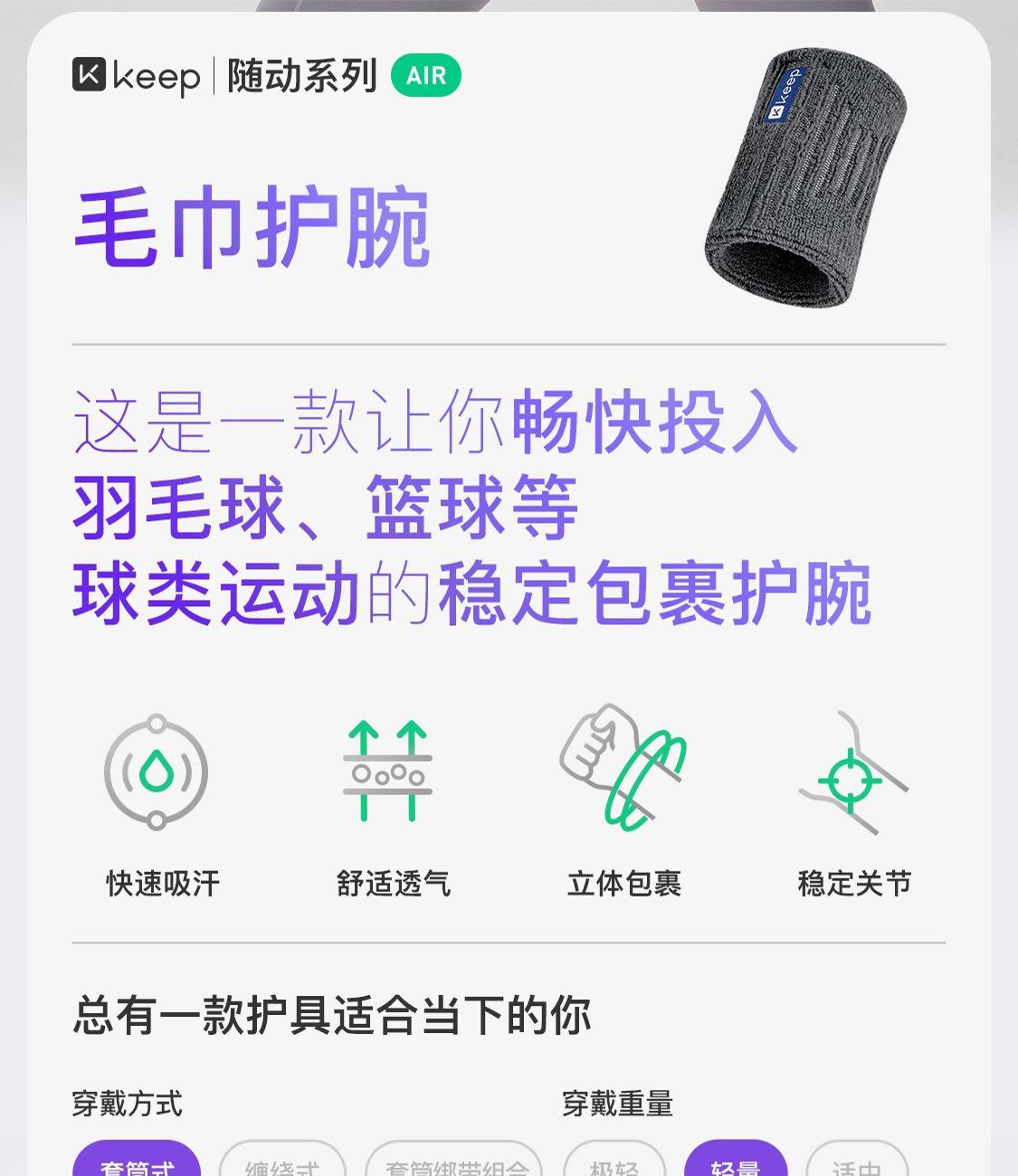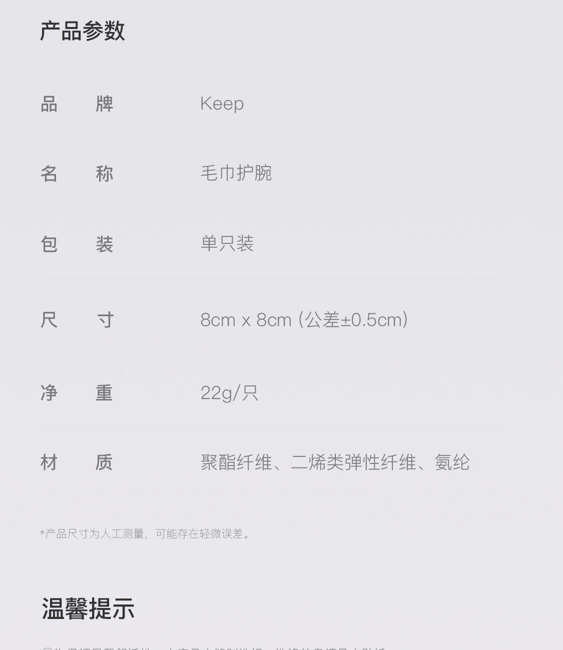 Keep毛巾护腕8*8cm单只装