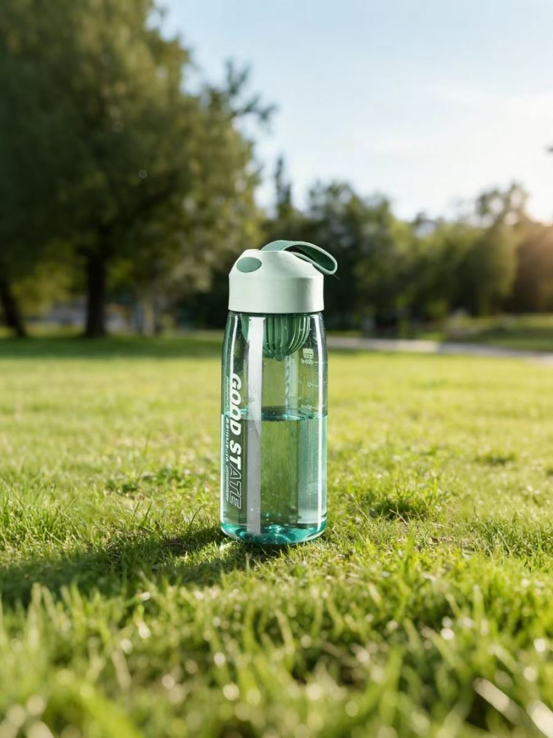 运动水杯采用PC杯体 PP杯盖 可手提适中容量