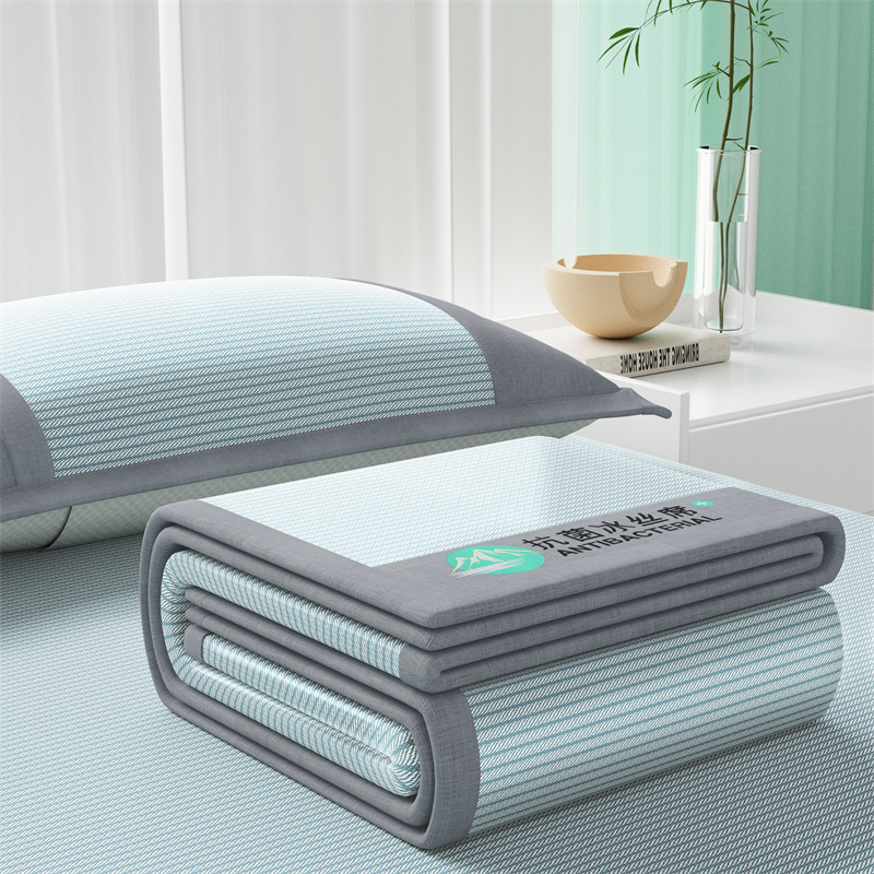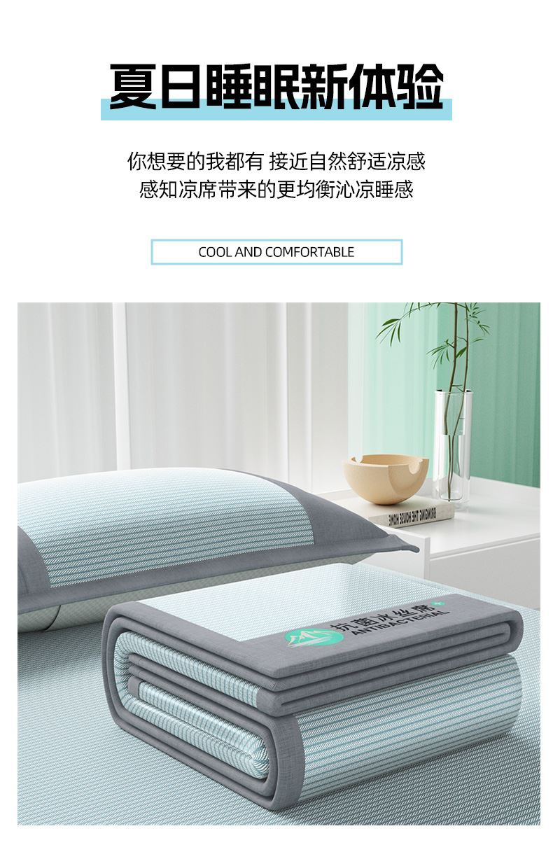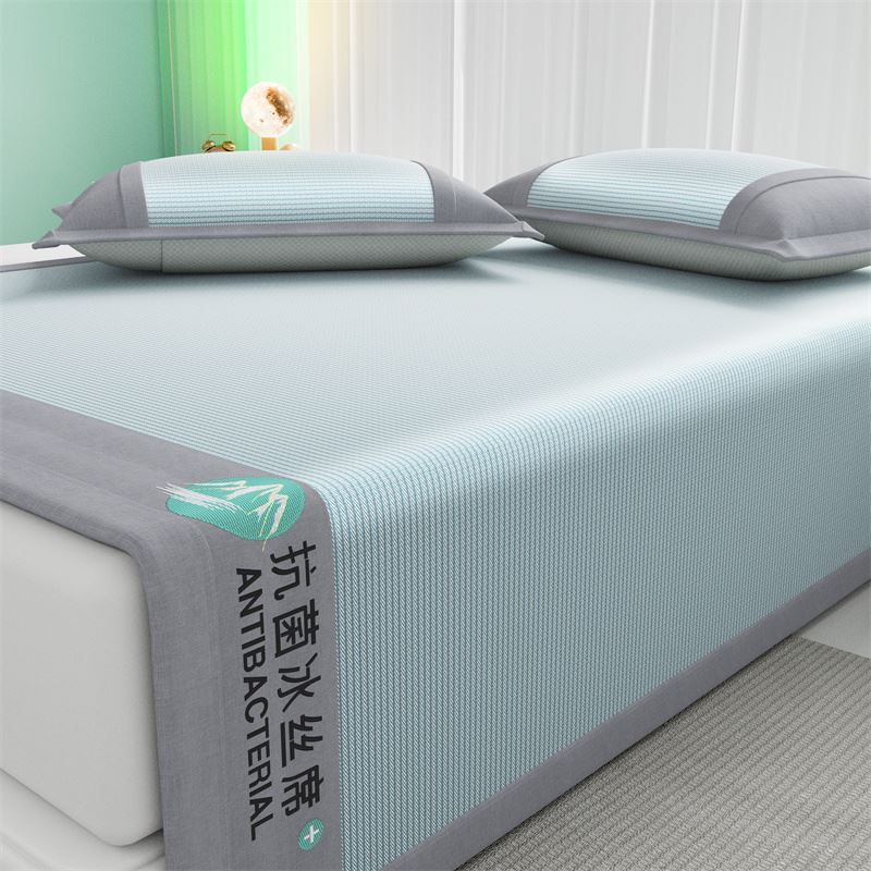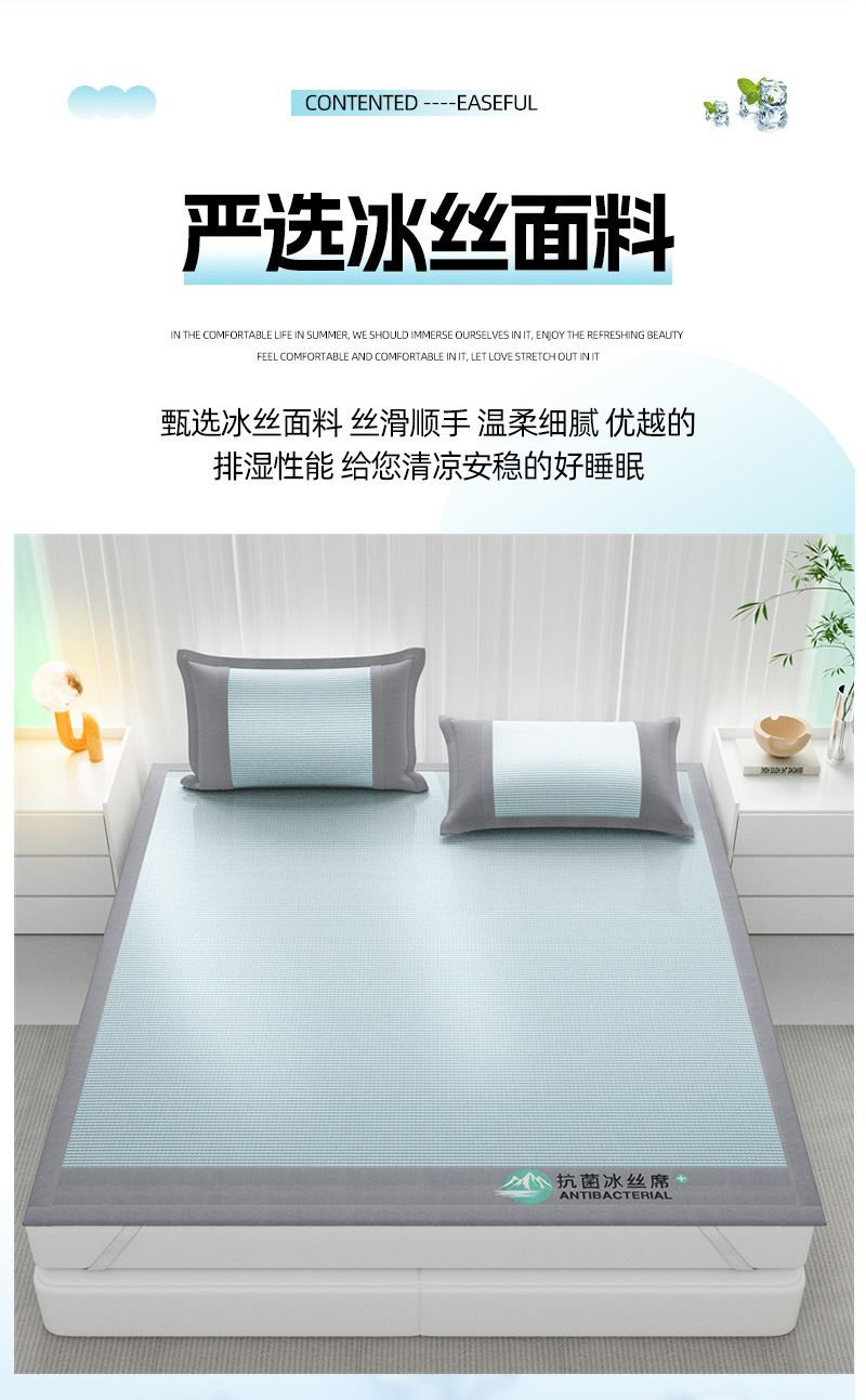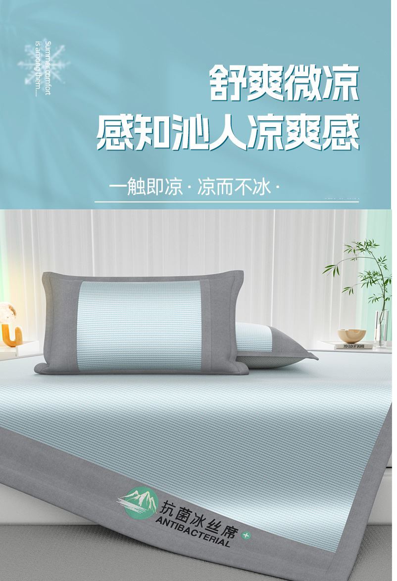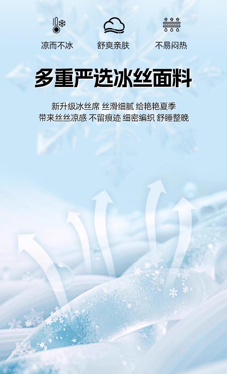 规格:180*200cm*1 枕套:48*74cm*2 面料:冰丝 复合料:华夫格 产品特点: 1.冰丝是一种植物纤维面料光滑清凉,不沾皮肤,吸湿散热快。 2.高密度冰丝面料,触感光滑细腻告别夹发烦恼。 3.提花工艺,色牢度高不易褪色。