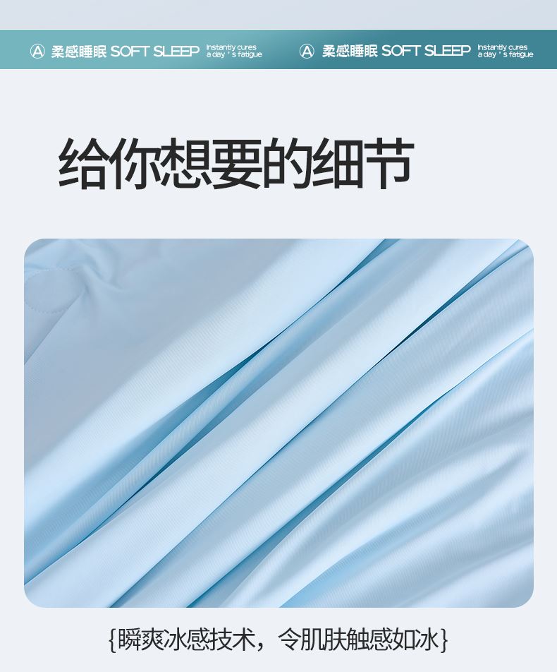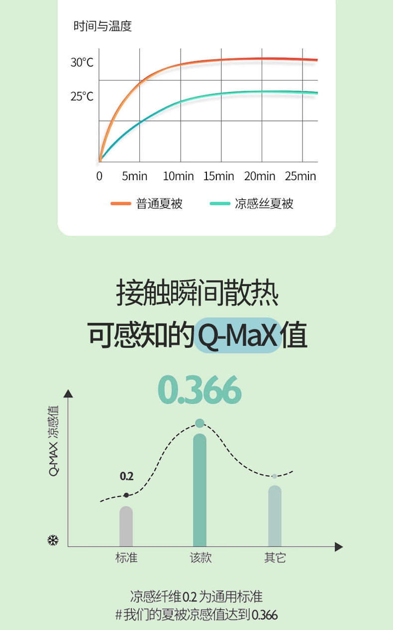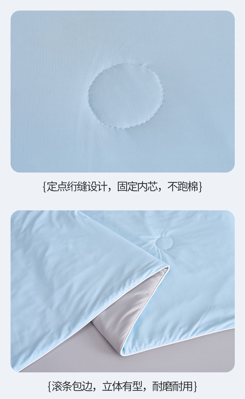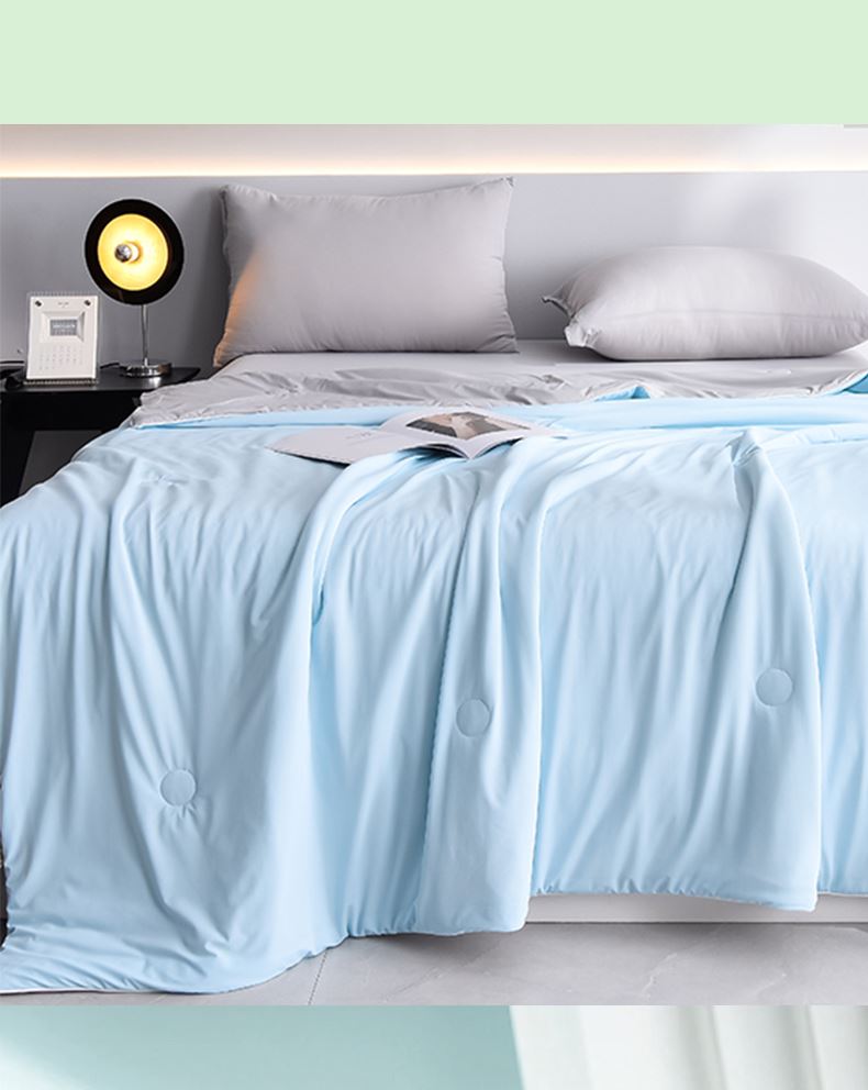 规格:200*230cm 面料:凉感丝(聚酯纤维) 填充:羽丝棉 重量:1500g 执行标准:GB/T22796-2021 安全类别:GB18401-2010 B类 1.凉感丝是一种科技纤维,这种纤维的吸湿性、透气性比普通纤维要好得多,同时还具有比较好的保型性和悬垂性。 2.凉感丝的含湿率符合人体皮肤的生理要求,具有光滑凉爽、透气、抗静电、防紫外线,色彩绚丽的特点。且具有棉的本质,丝的品质是地道的生态纤维,源于天然而优于天然。