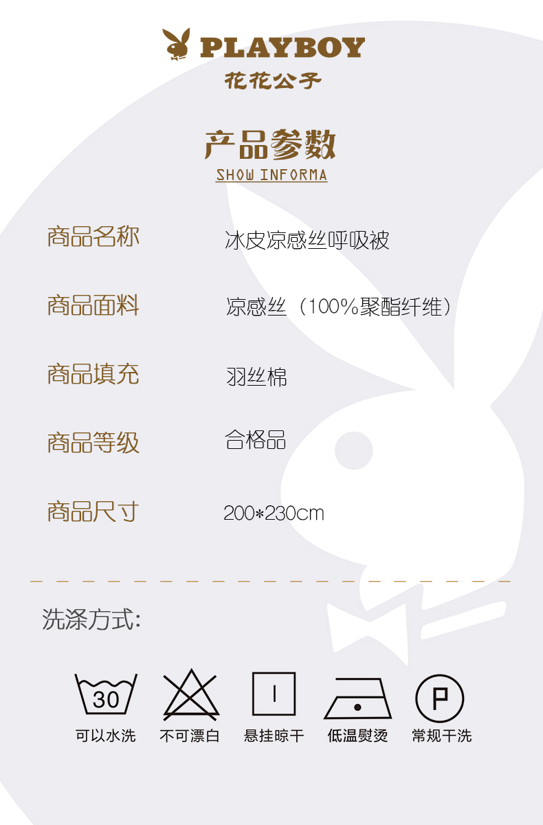 花花公子冰皮凉感丝呼吸被PB-25MB706