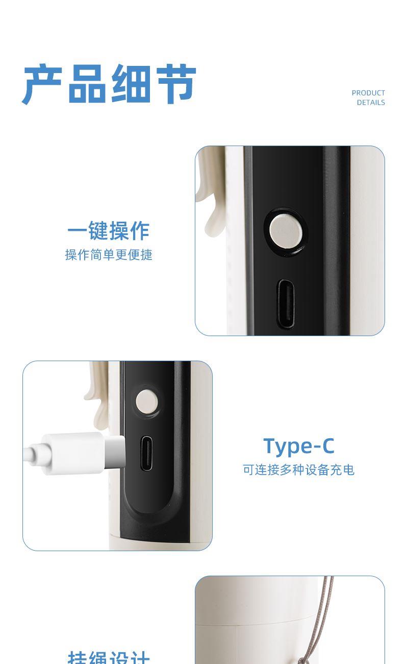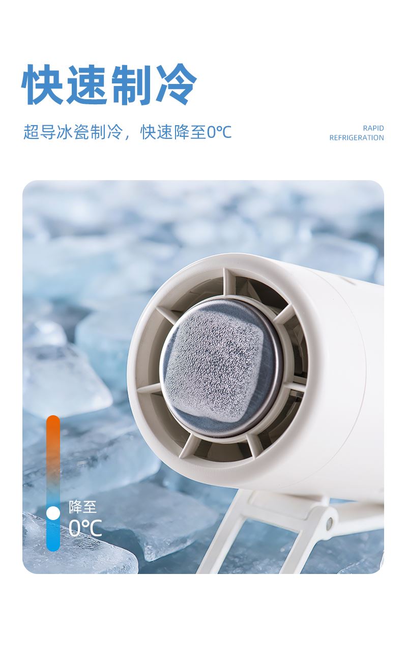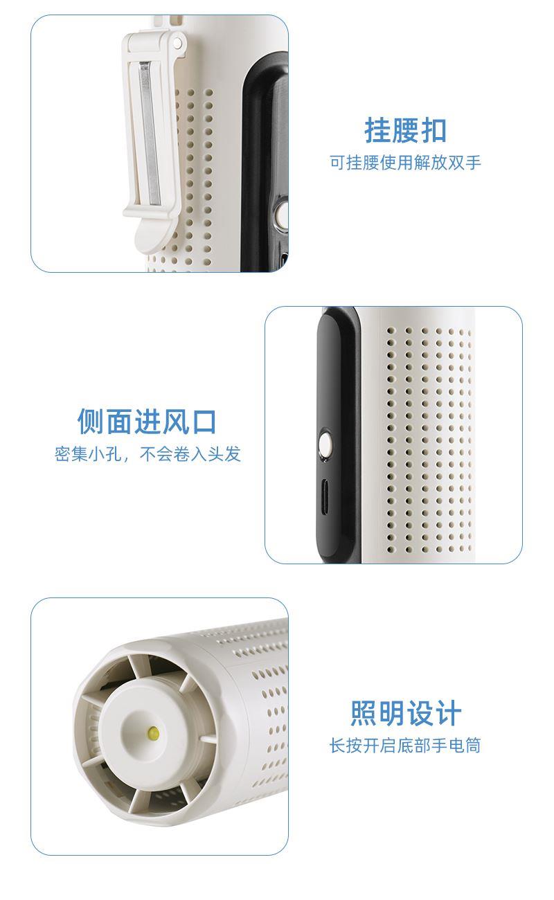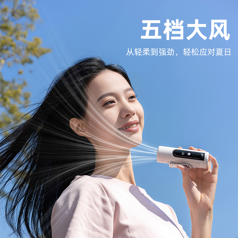 *多功能超轻制冷小风扇,仅140g *智能数显,20000转速真高速无刷电机 *高亮度LED手电筒,3000毫安 *5档大风力,可挂脖、可挂腰、可桌面、可手持 *360°进风口手心也降温