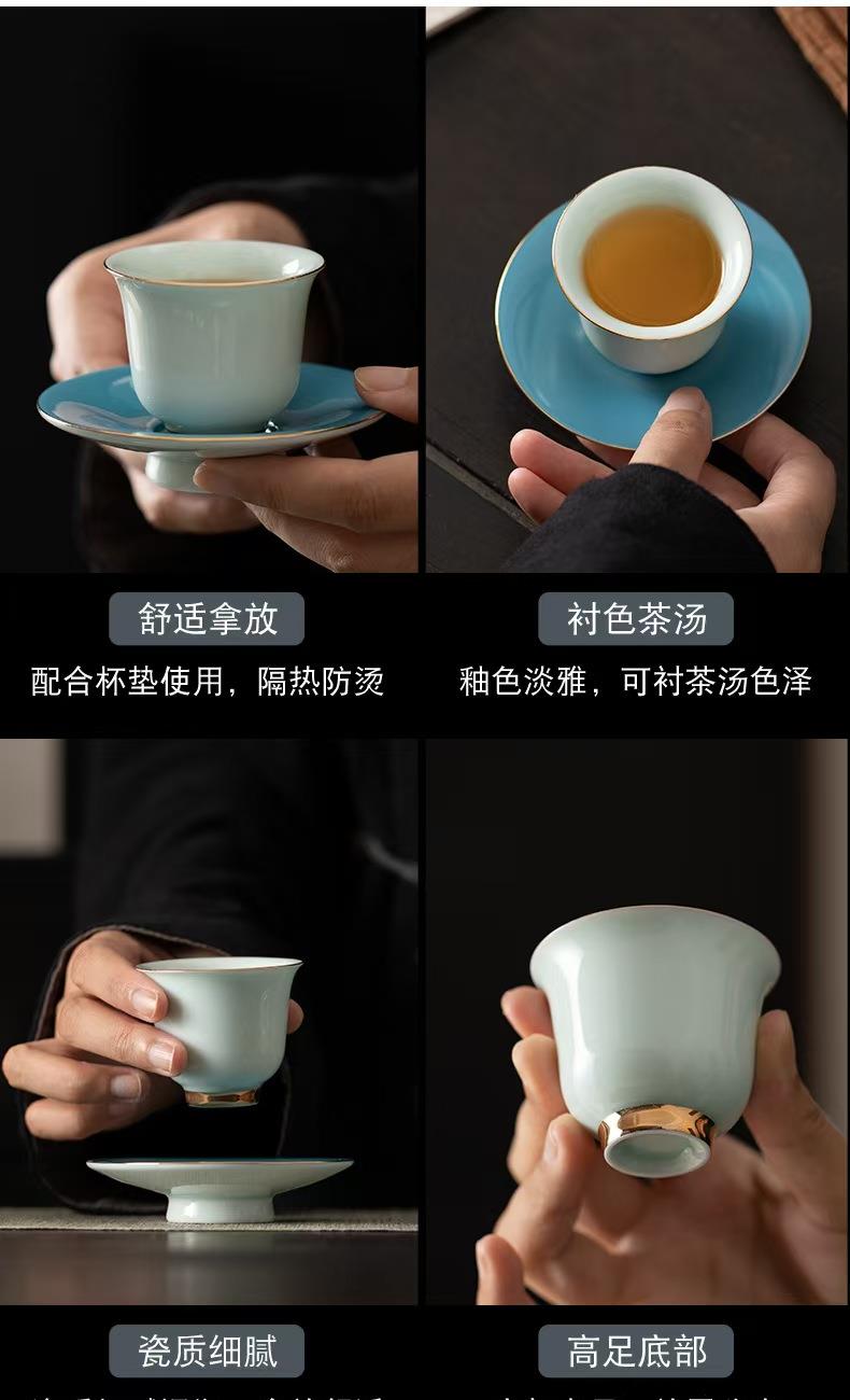 配制:1壶 6杯 1壶承 6碟 1锦盒 规格:壶:12*8cm 公道杯:9.2*9.1cm 茶杯:6cm*5cm 手提锦盒:39*27*13cm 材质:青山玉 24K真金 推荐说明:青山玉是青瓷新品,以瓷质细腻,线条明快流畅,色泽纯洁而斑斓著称。青如玉,明如镜,声如磬,描24K真金奢华装饰,被称为瓷器之花。