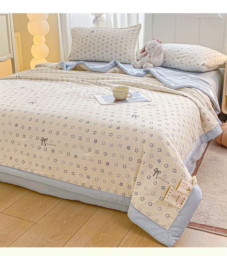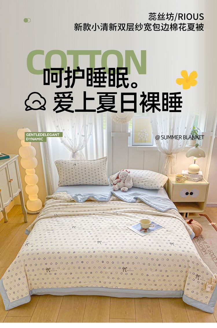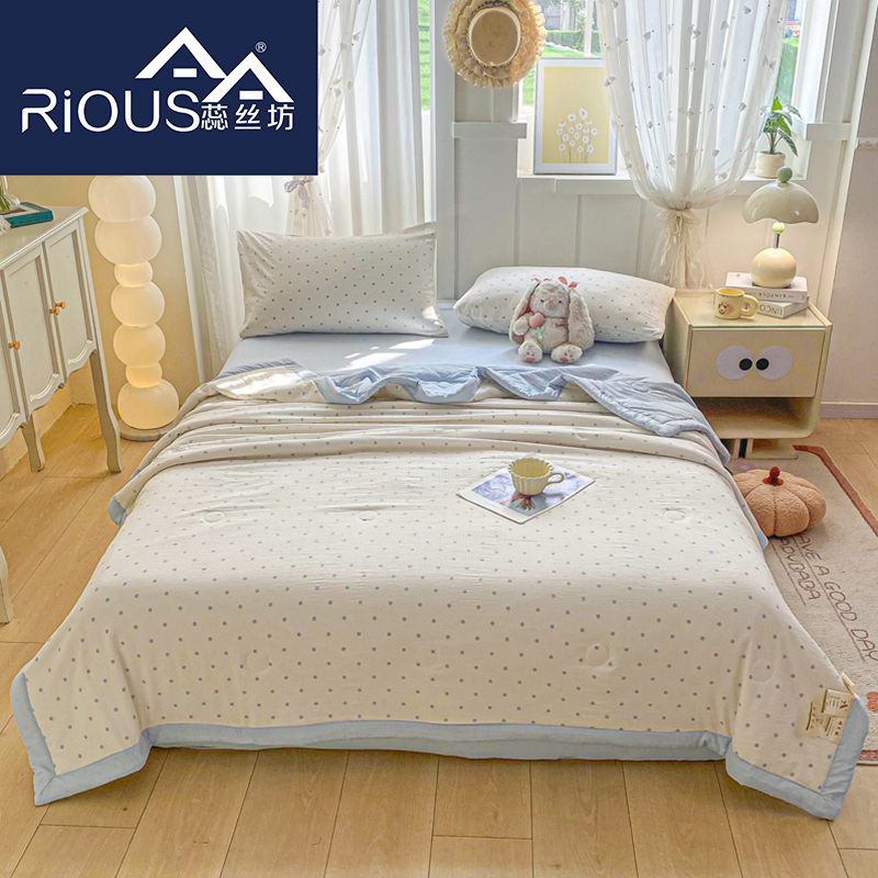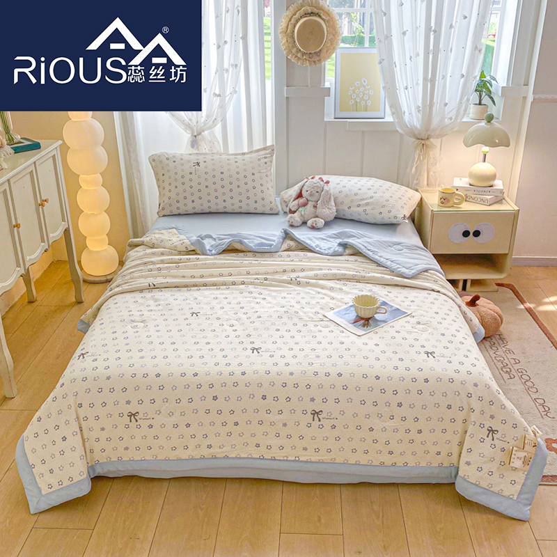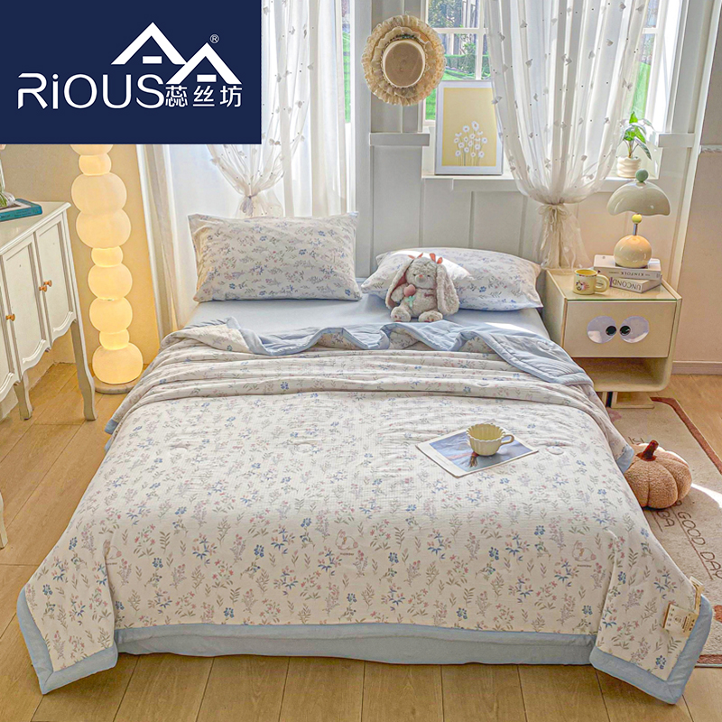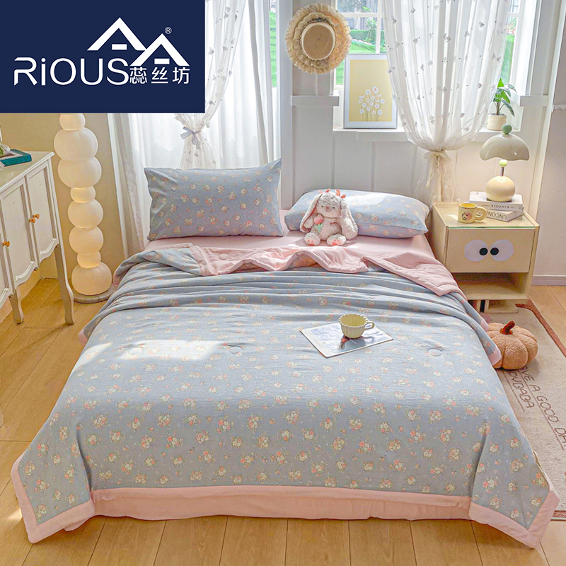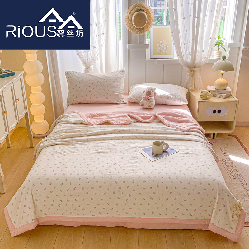 蕊丝坊家纺新款小清新双层纱宽包边棉花夏被150*200cm