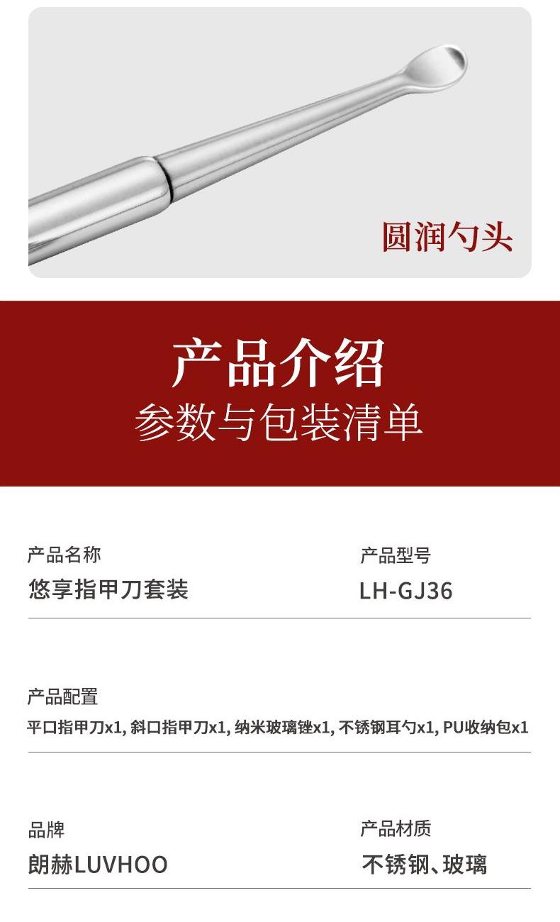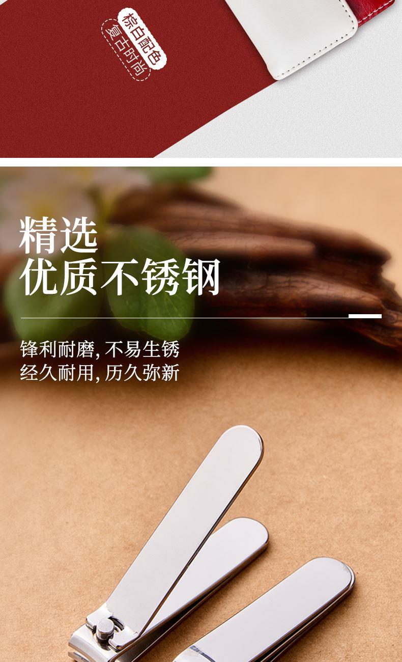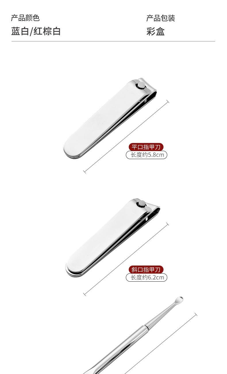 材质:不锈钢、玻璃、PU 配置:平口指甲刀、斜口指甲刀、耳勺、 玻璃锉、收纳包