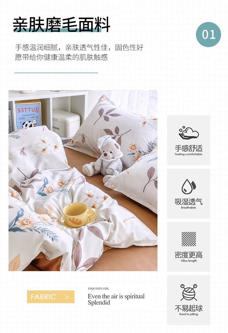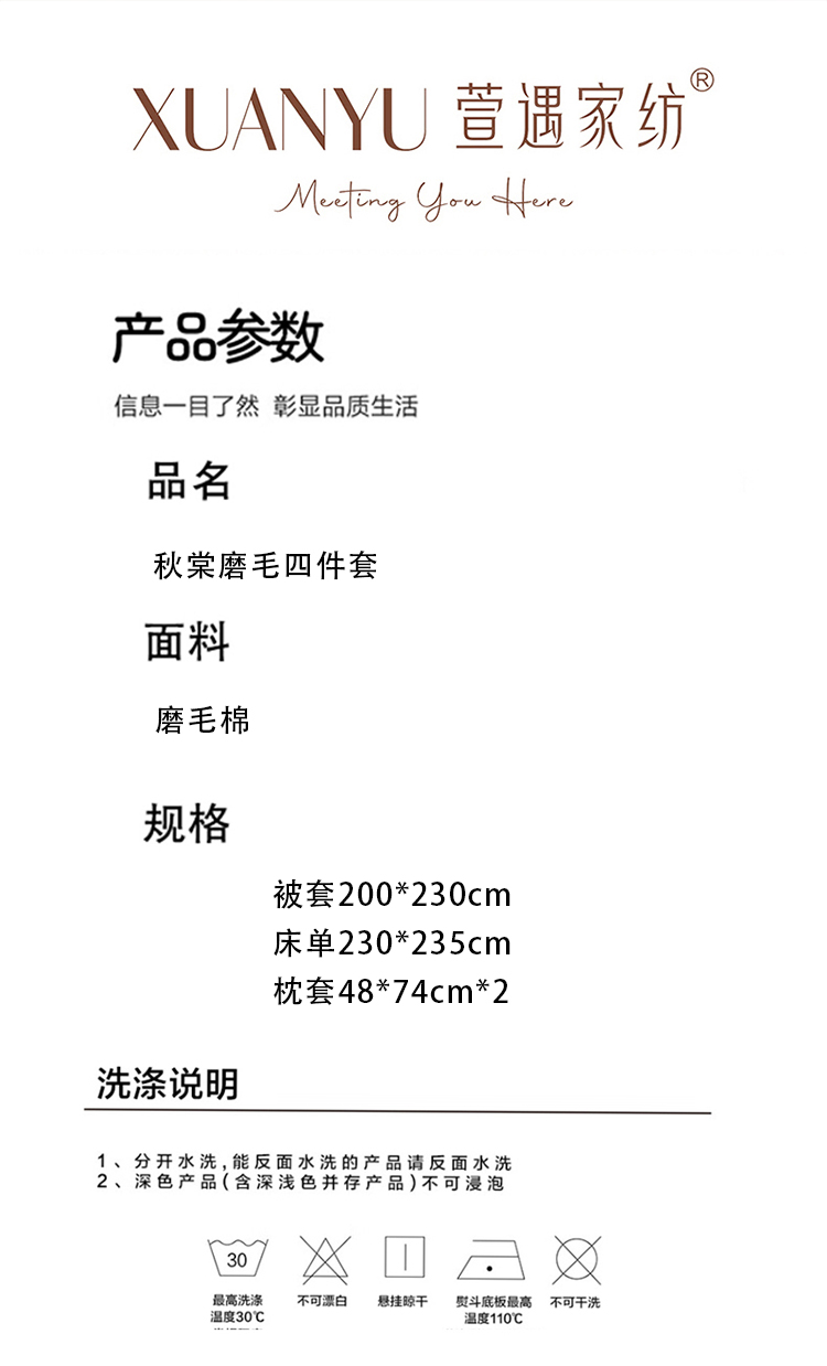 萱遇家纺秋棠磨毛四件套X-T7702