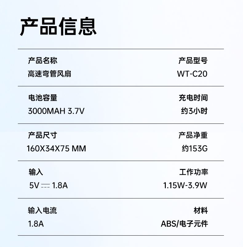 右心大风力高速弯管手持风扇C20