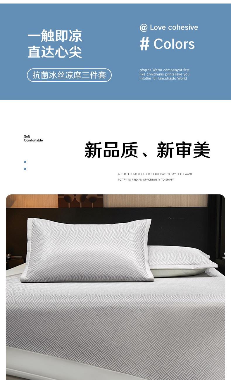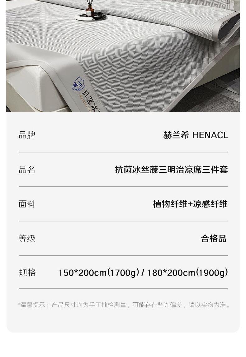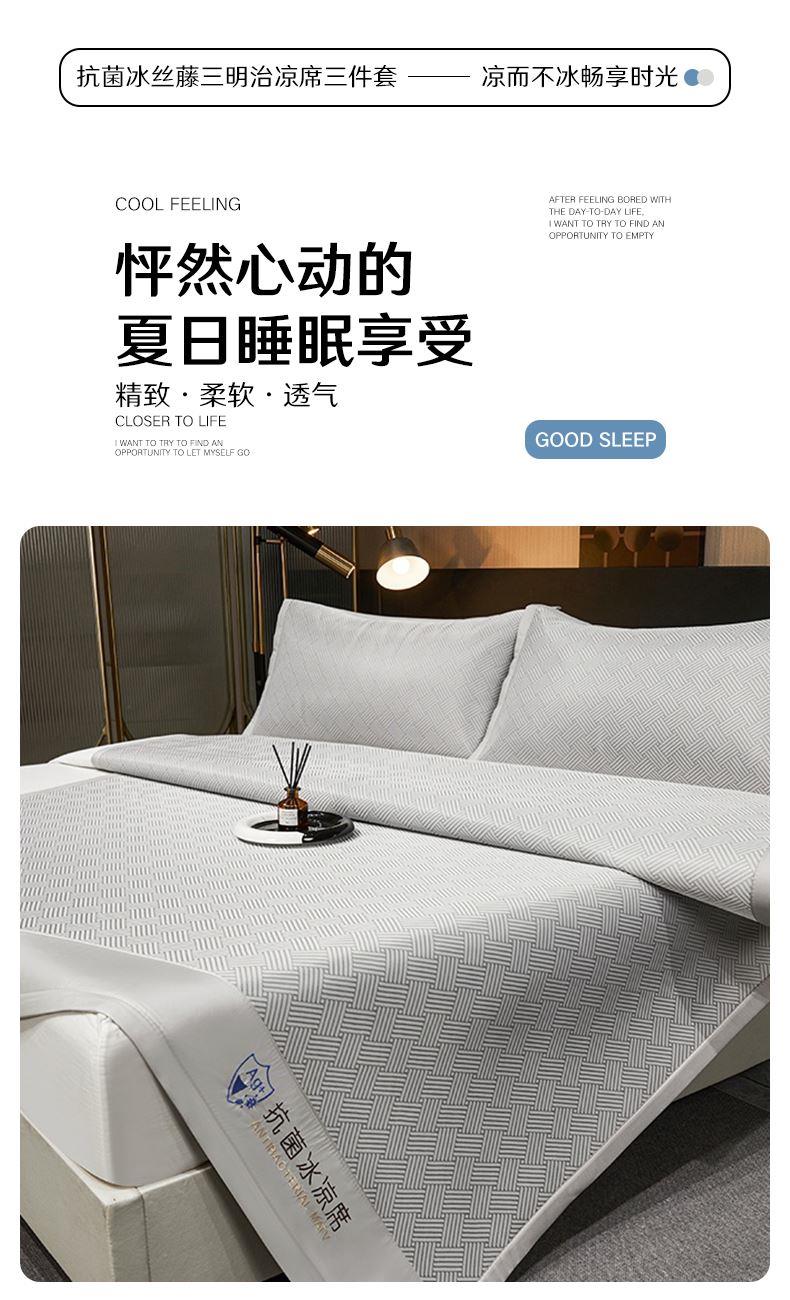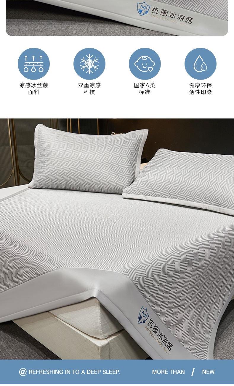 <赫兰希>抗菌冰丝藤三明治凉席三件套-灰
