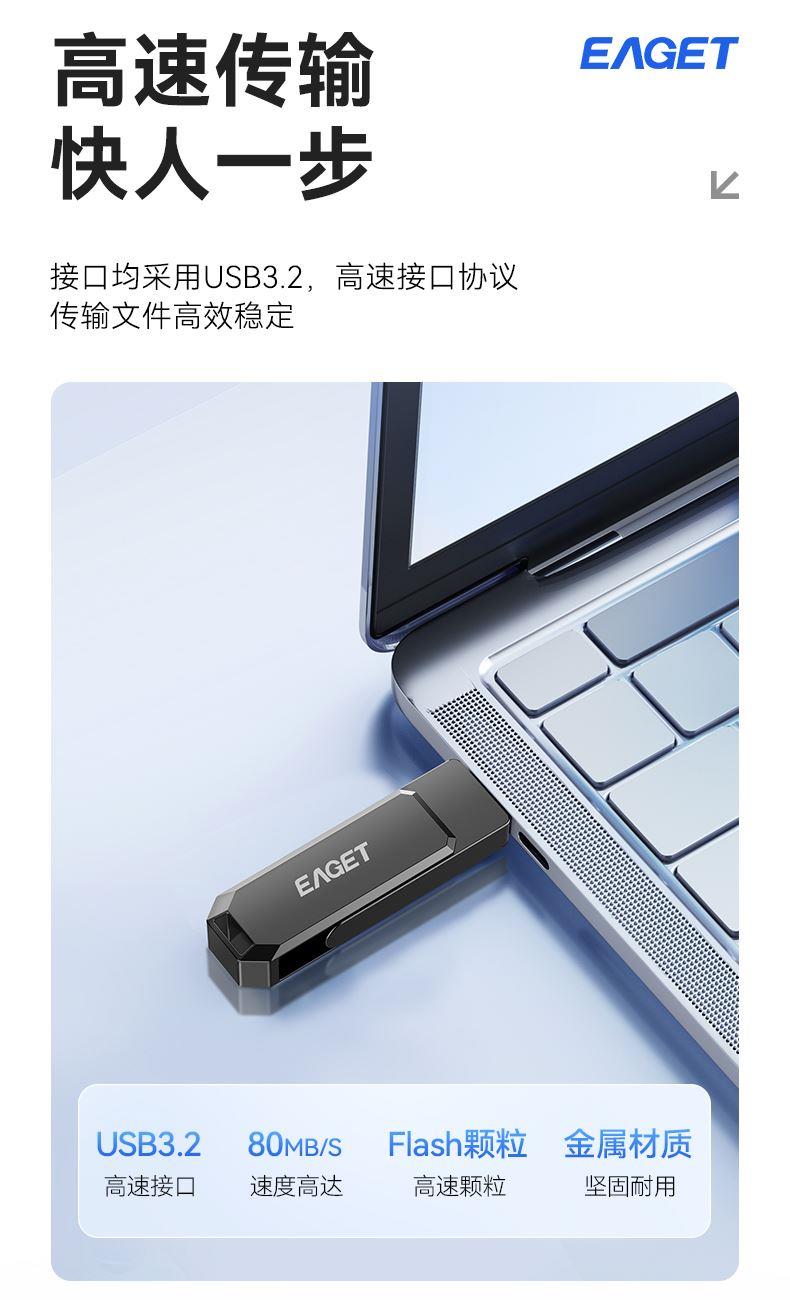 忆捷HF66USB3.2U盘高速全金属旋转优盘32G