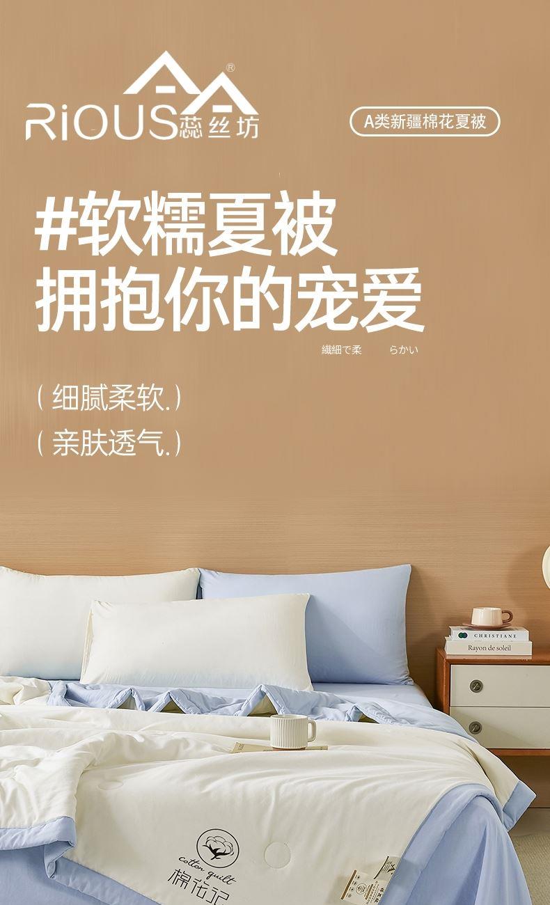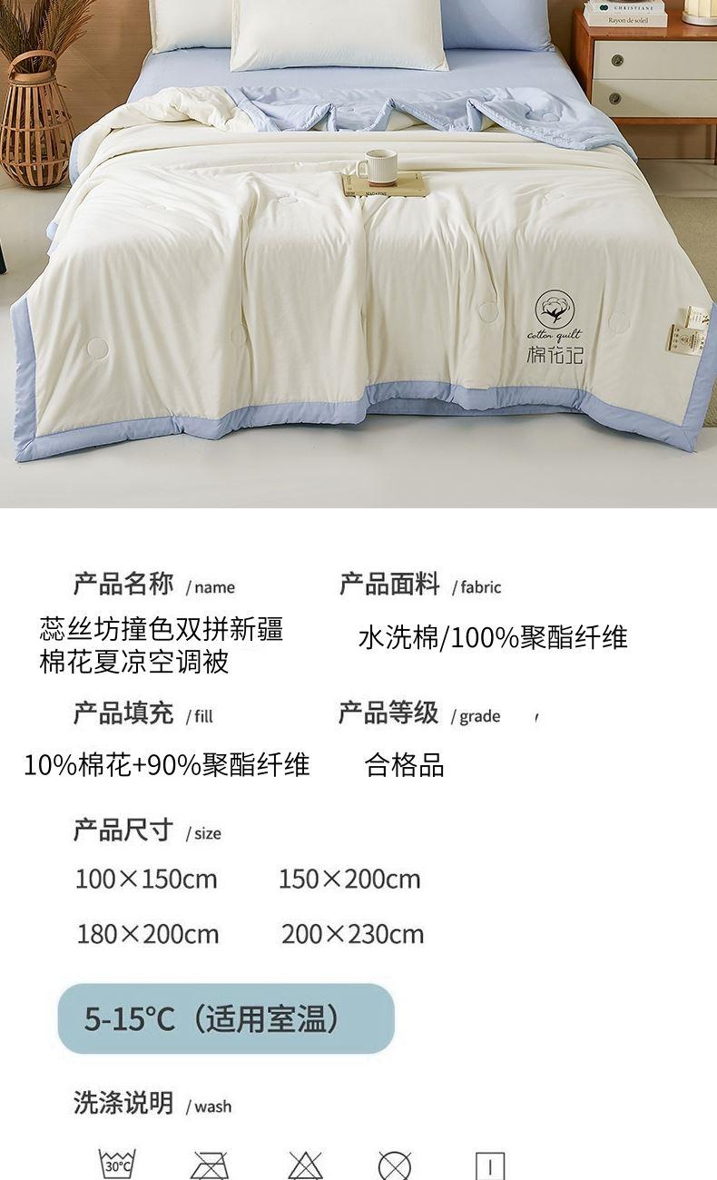 蕊丝坊家纺撞色双拼新疆棉花夏凉空调被200*230cm