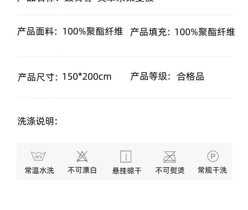 产品编码:CP664-2B 产品规格:150*200cm 面料材质:聚酯纤维 填充材质:聚酯纤维 重 量:800g 礼盒尺寸:520*400*120mm