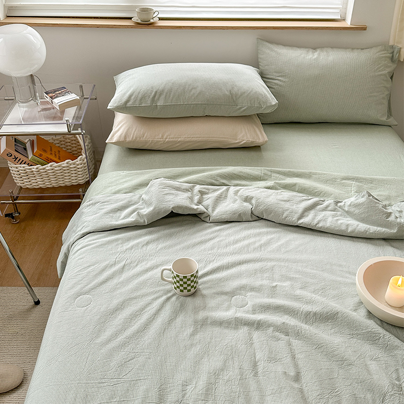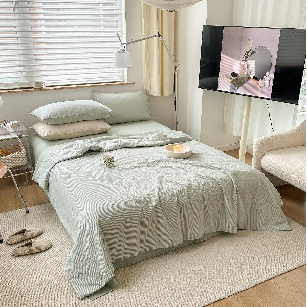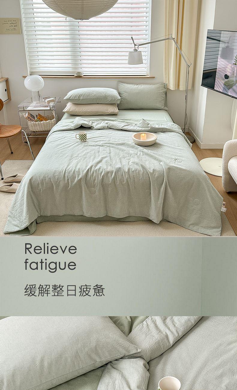 生活元素绿密条色织全棉夏被(1.5M)SZ-3018B