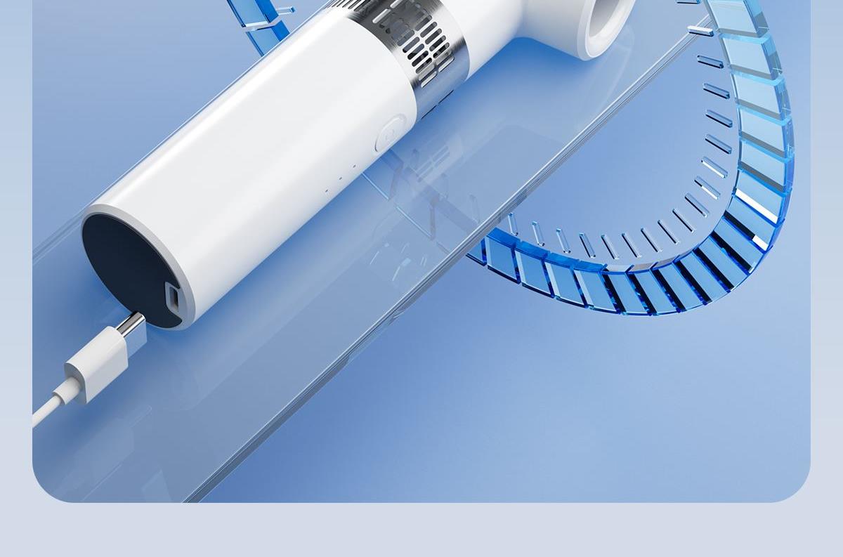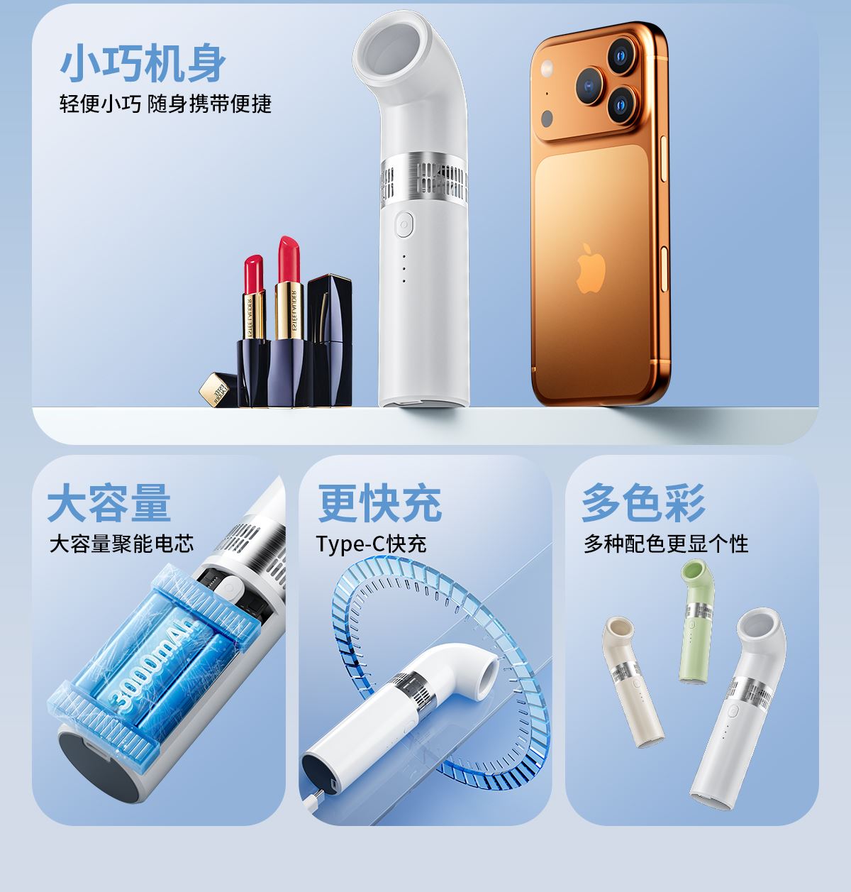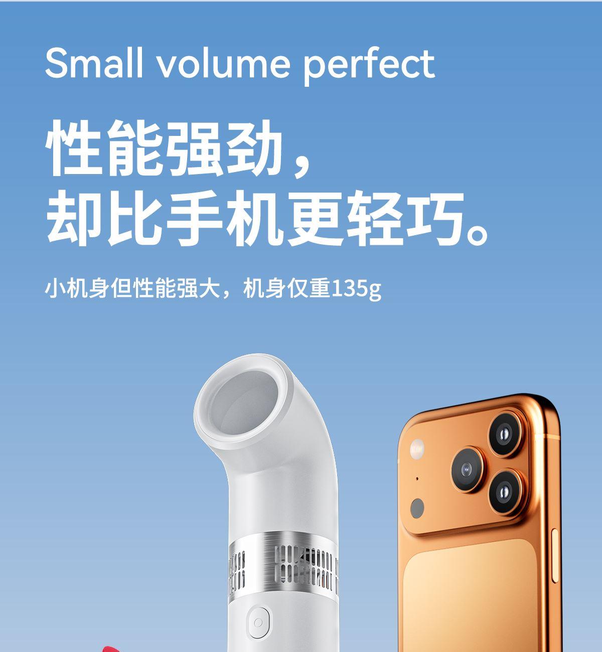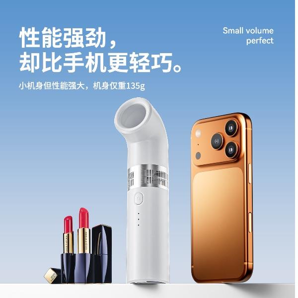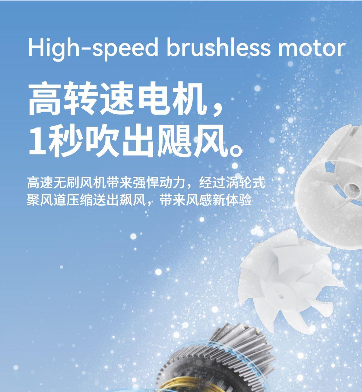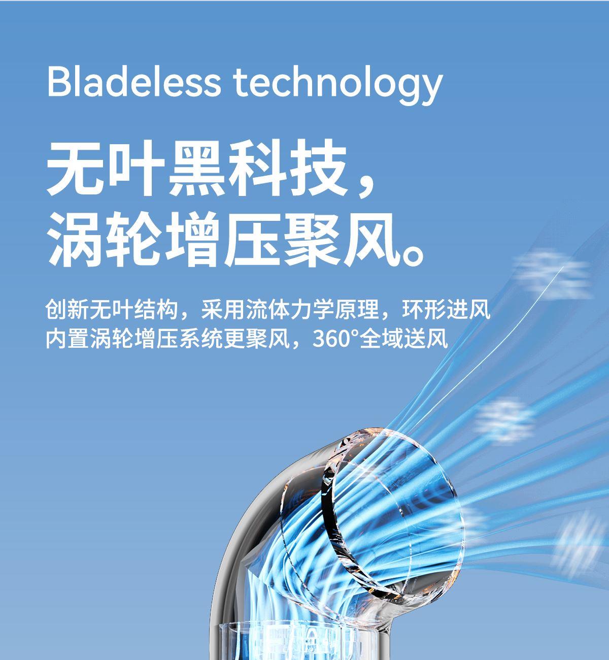 *18000RMP大风力,3档风力调节 *可立在桌面使用,无叶弯道凉风 *迷你小巧,出行方便携带