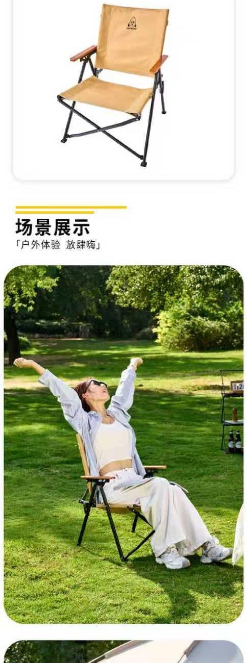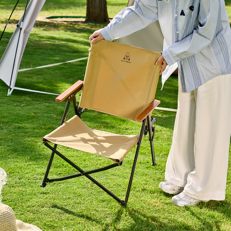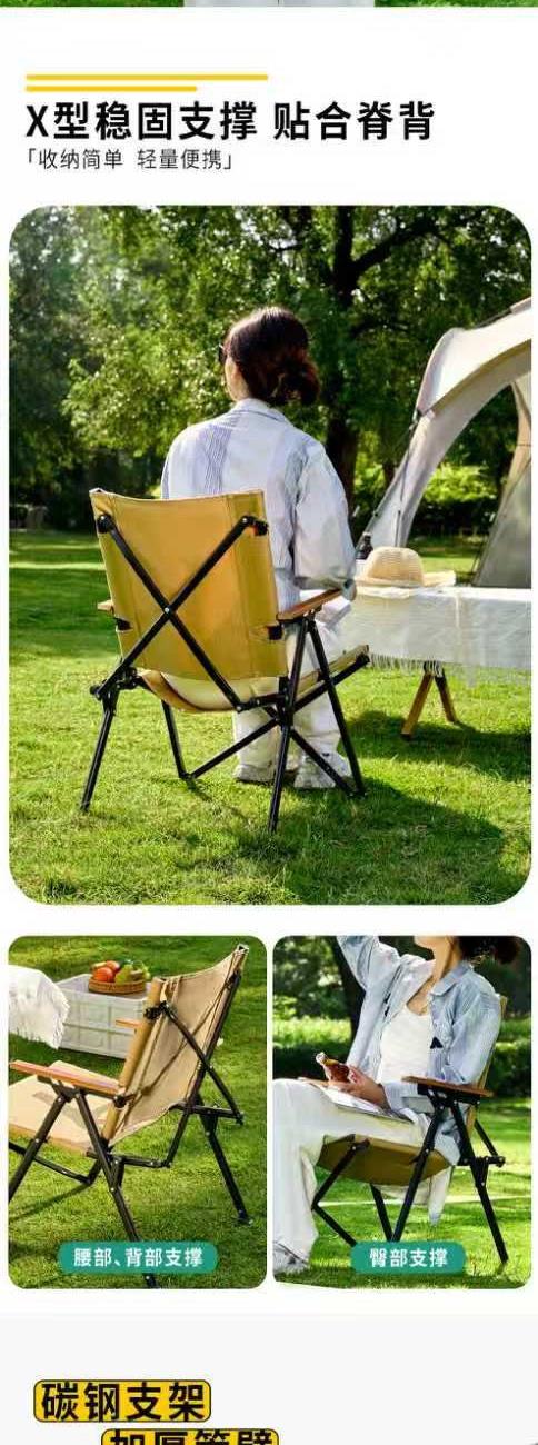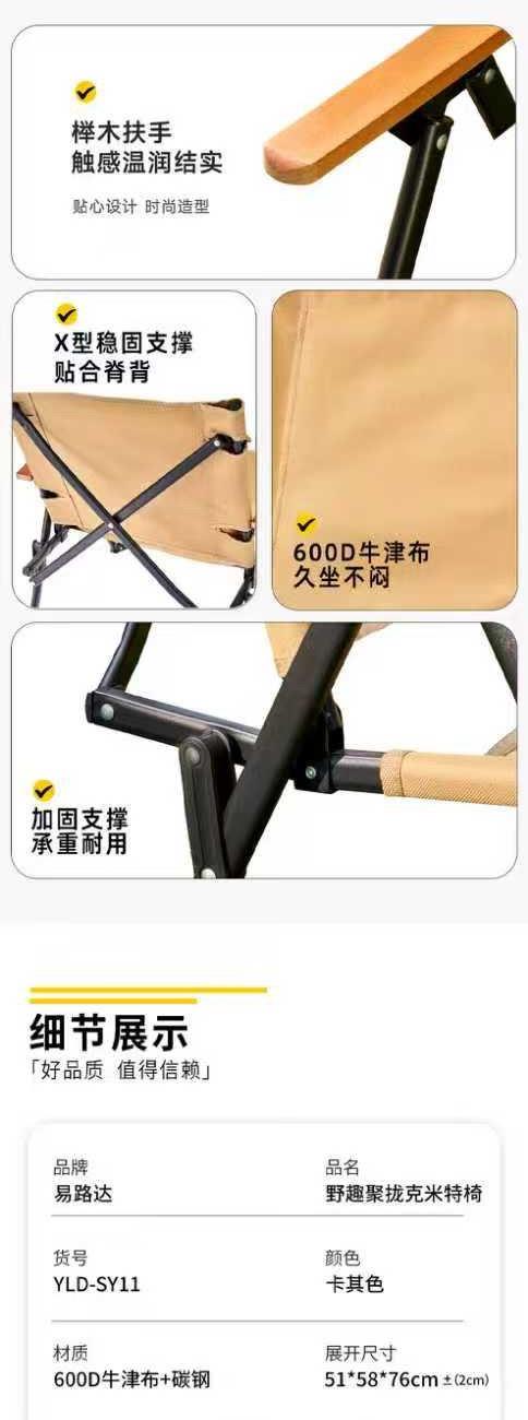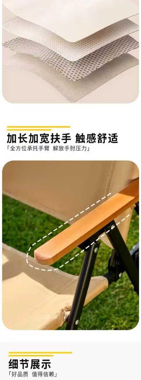 颜色:卡其色 展开尺寸:51*58*76cm(±2cm) 材质:600D牛津布+碳钢 扶手:榉木 管壁:0.8mm