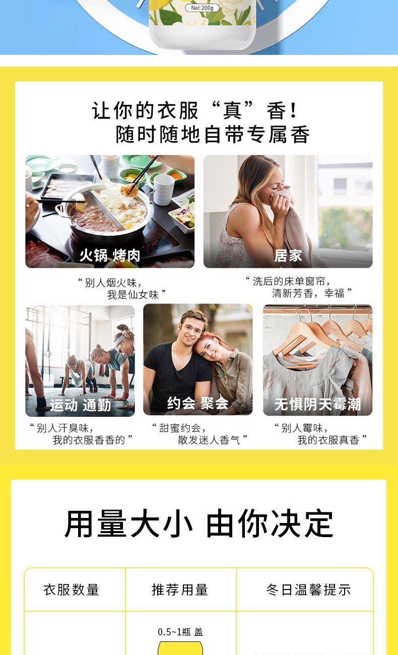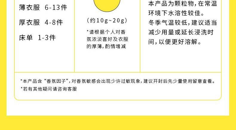 产品特点:进口香精,纳米微胶囊,锁住香氛精华摩擦生香,深入衣物纤维持久留香。柔顺因子抗静电柔顺衣物