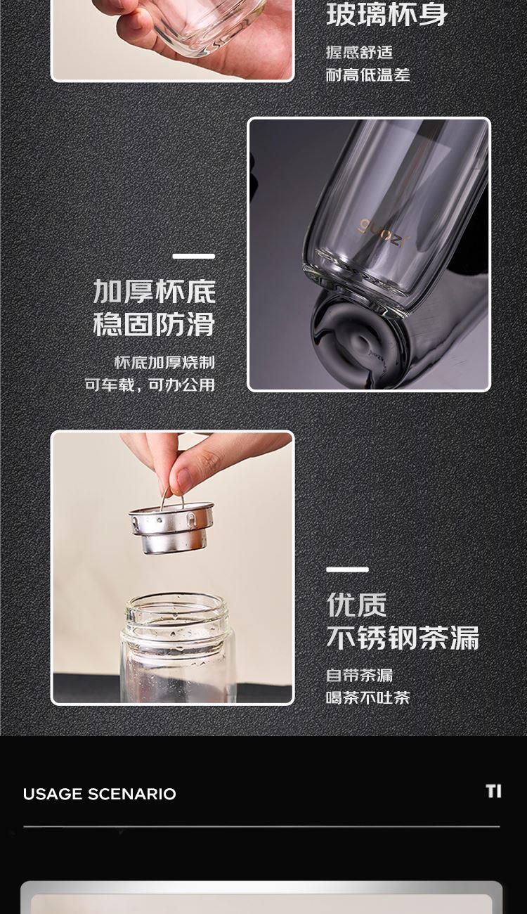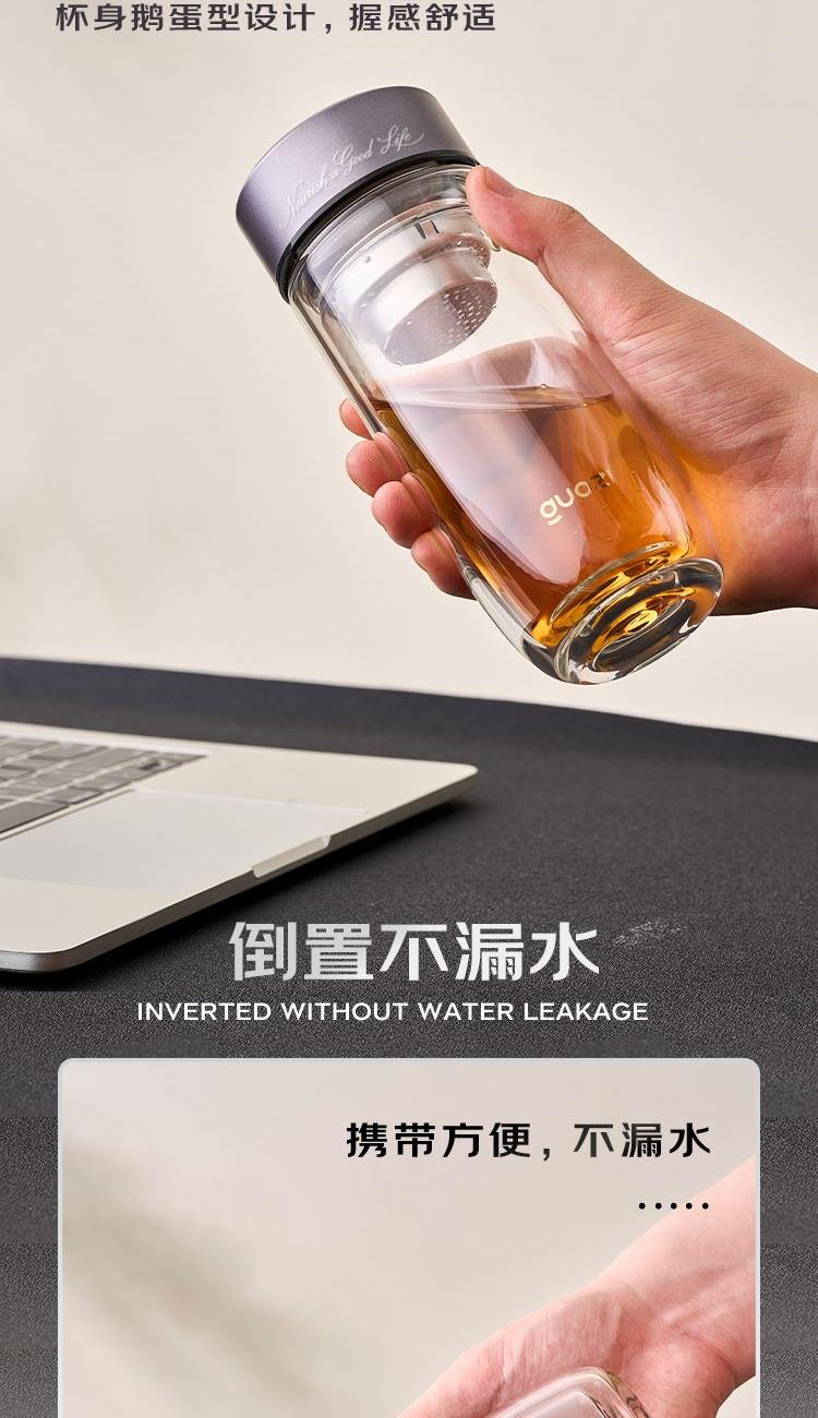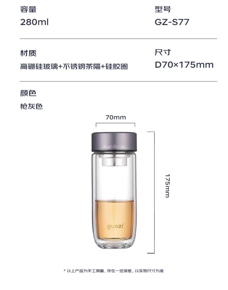容 量:280ml 材 质:高硼硅玻璃+不锈钢茶隔+硅胶圈 尺 寸:D70×175mm