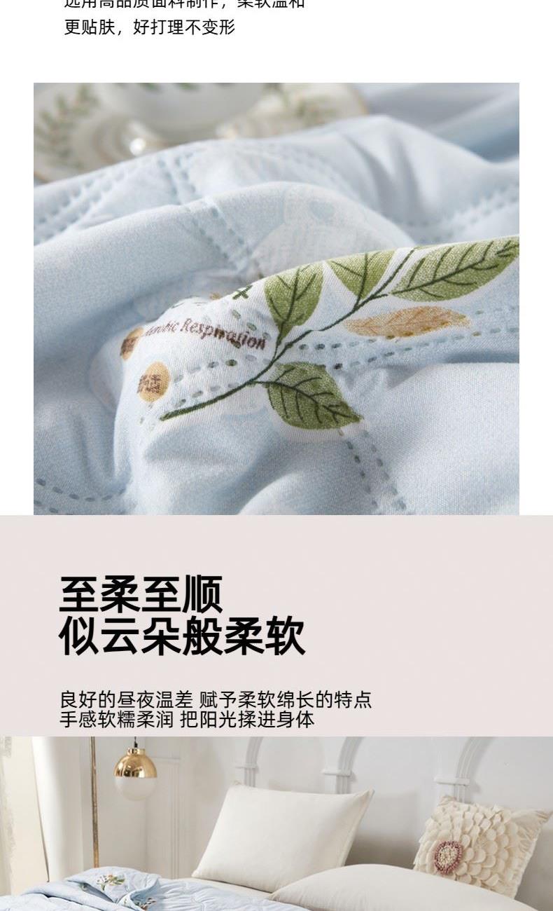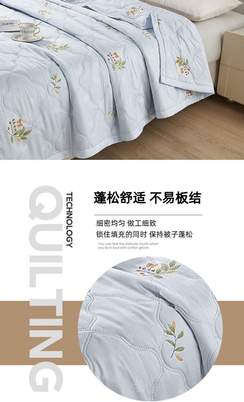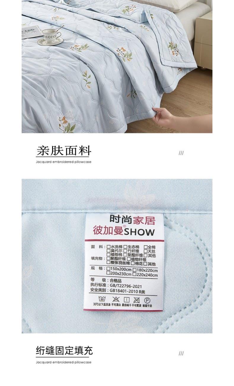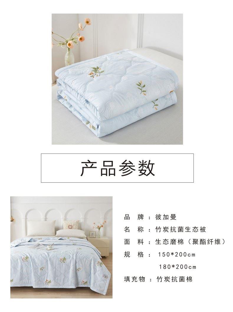 货 号:BGM-B2601 规 格:150*200cm 面料成份:生态磨棉 克 重:650g 填充物:竹炭棉 此款被子填充物采用竹炭棉,能有效抑制细菌滋生,同时吸附异味,给肌肤更洁净的睡眠环境。 亲肤透气:面料为生态磨棉,触感柔软细腻,吸湿透气,不闷汗,适合春夏季节使用。