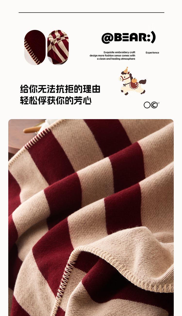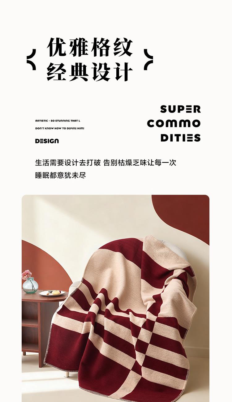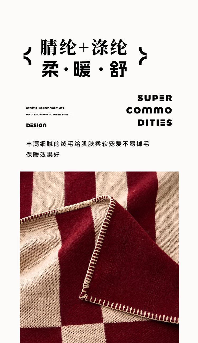 格:125*155cm 面料:60%腈纶40%涤纶 重量:900g 执行标准:FZ/T36106-2019 安全类别:GB31602-2019B类 .1.采用60%腈纶40%涤纶面料,具有良好的排湿透气性,绒毛纤长,手感柔软细腻,保暖性好,光泽度高; 2.时尚简约设计,优雅而不失大气,细节感满满。精致的包边工艺,做工精细,针脚细密,不易脱线,牢固耐用。