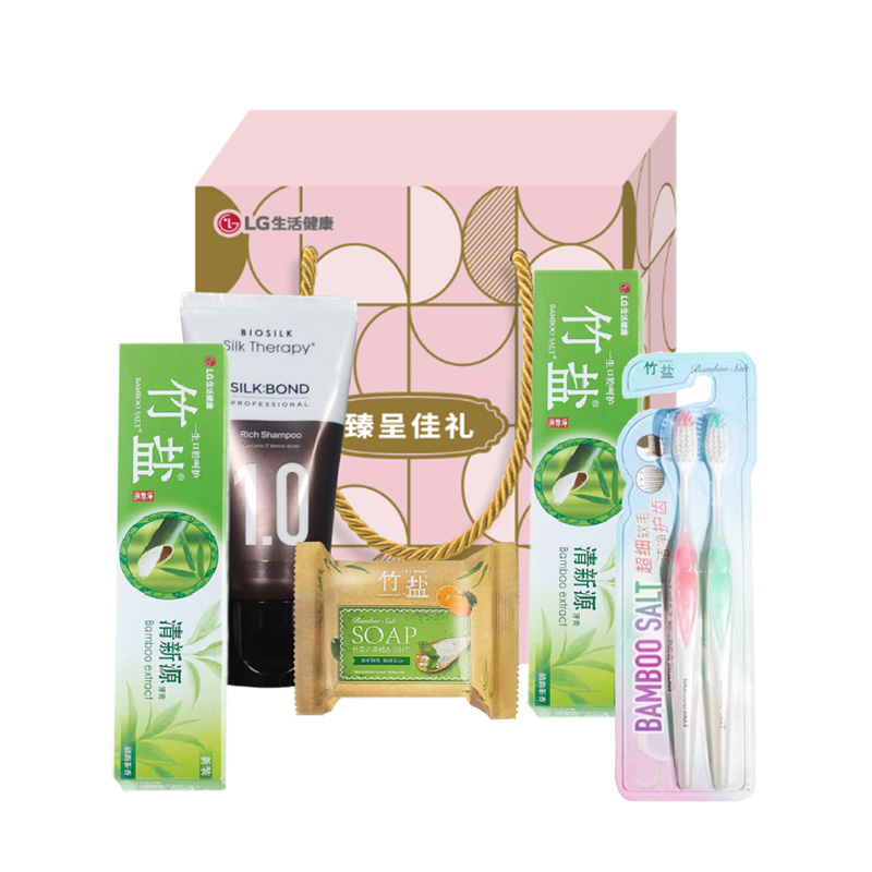 韩国LG生活健康洗护日用品竹盐全家福6件套礼盒套装