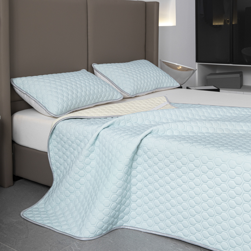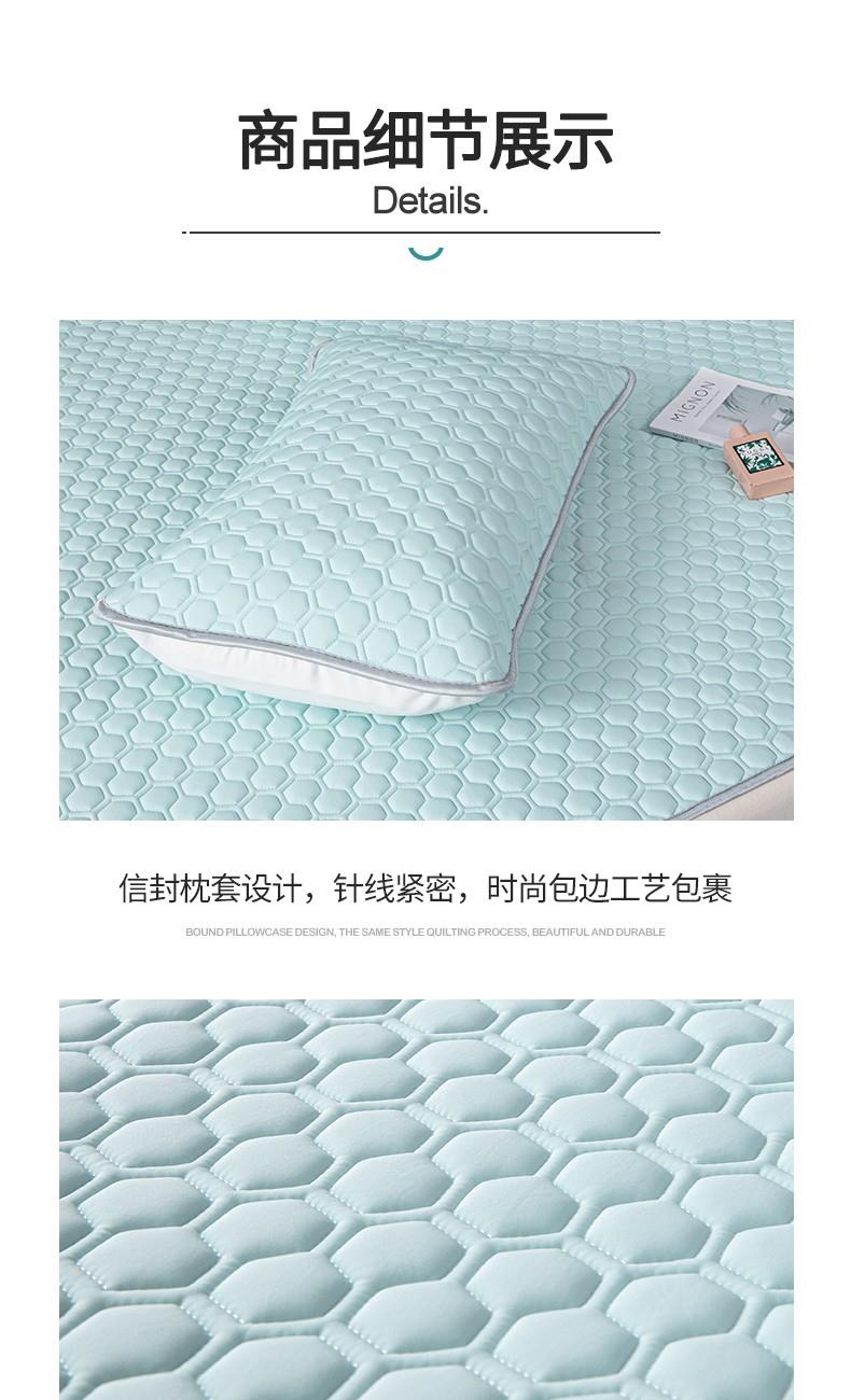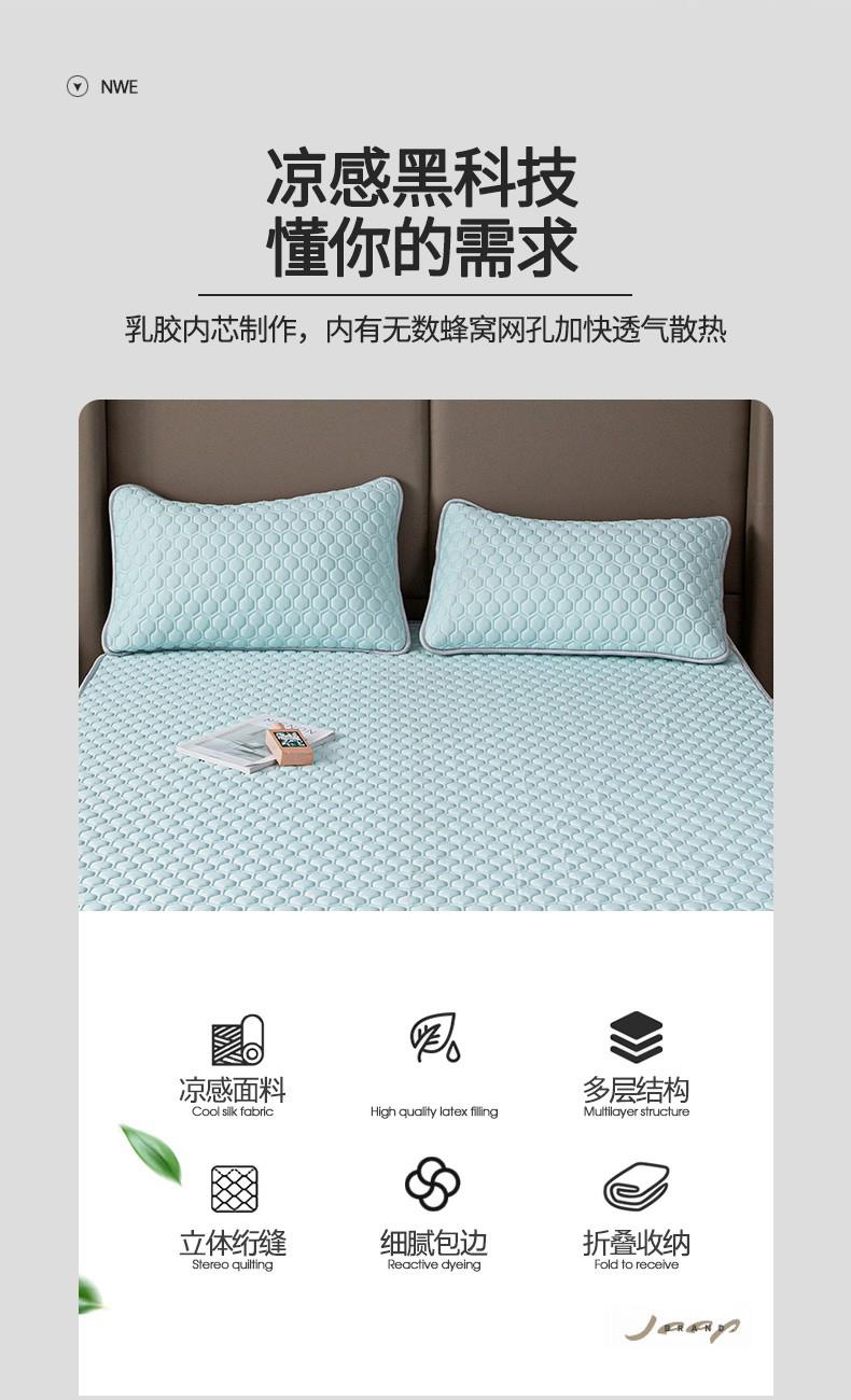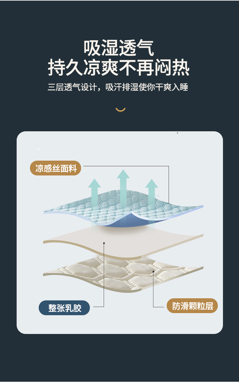 规格:180*200cm 枕套:48*74cm*2 面料:凉感丝 填充:皇家乳胶 执行标准:G8/T22796-2021 安全类别:GB18401-2010 A类 1.乳胶寝具的特点为自然通风散热快,使空气流动,散发体内的闷热,保持清凉舒服。 2.内芯由天然乳胶制成,无毒性,软硬适中,不易变形。透气,分布平均,透气性佳,具通气效果,能使空气自动流通,迅速散发热气