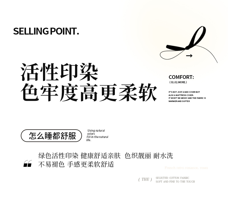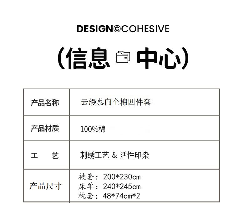 被套:200*230cm 床单:240*245cm 枕套:48*74cm*2 面料:全棉 产品包装:精美礼盒 产品特点: 全棉面料舒适、温度平衡,接受皮肤时感到柔软而不僵硬。棉纤维是天然纤维。纯棉织品与肌肤接触无任何刺激,对人体有益无害。