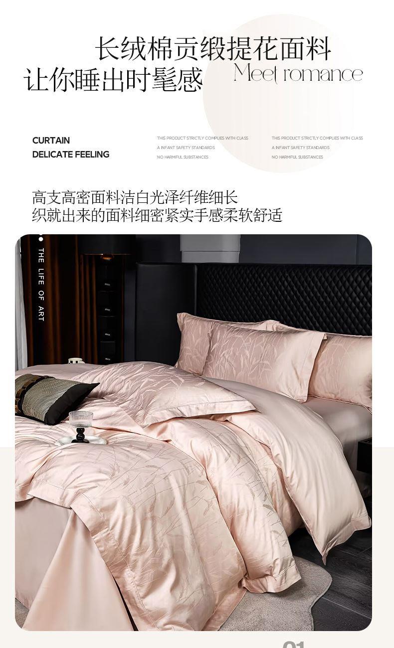 被套:200*230cm 床单:245*250cm 枕套:48*74cm*2 面料:新疆长绒棉 执行标准:GB/T22796-2021 安全类别:GB18401-2010 A类 1.精选新疆长绒棉面料,色彩艳丽,大方。采用高纱织纯棉面料,透气性很好,舒适而不失档次。 2.提花造型饱满逼真,色彩丰富,给您带来一场全新的视觉盛宴。