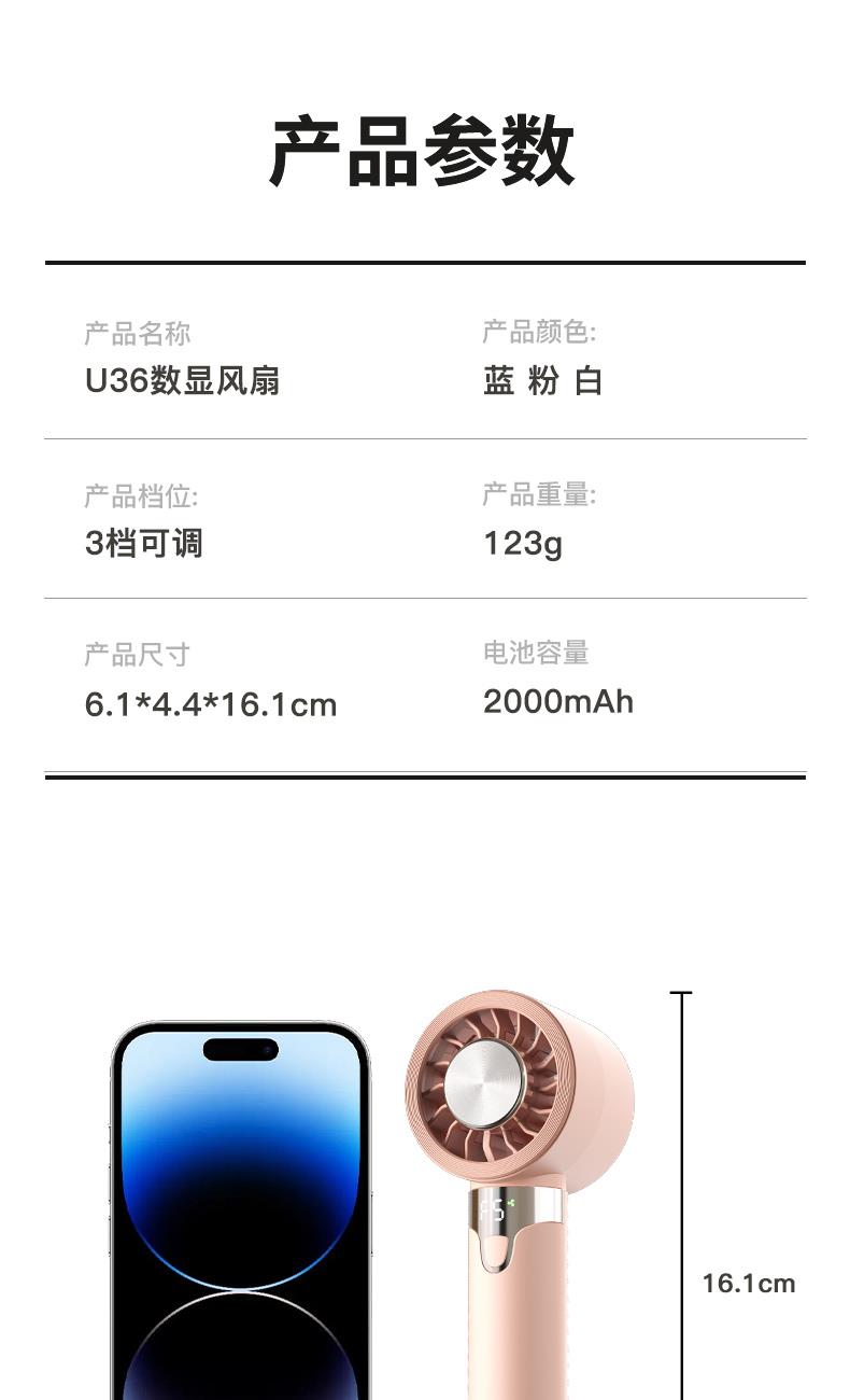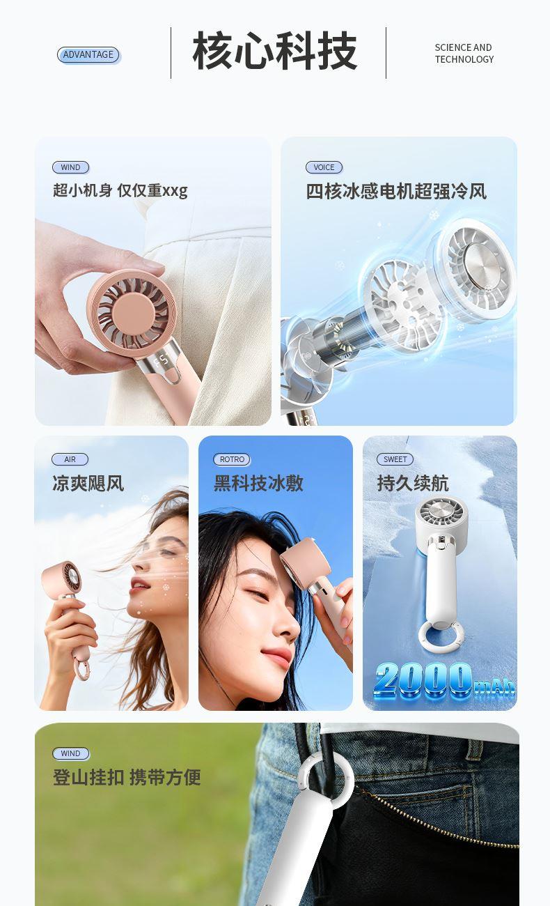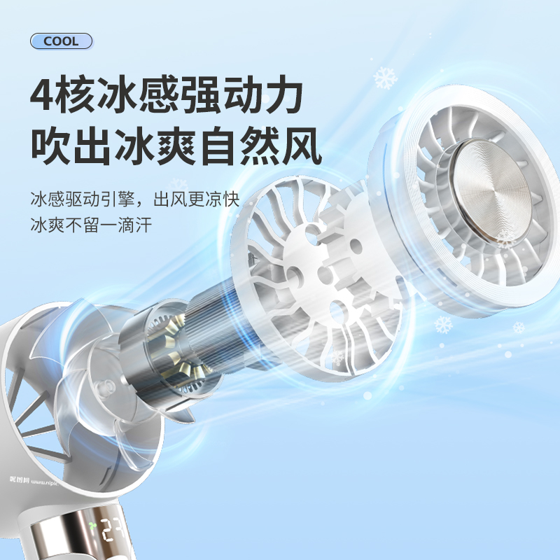 *长续航,带数显,带登山扣 *可桌面使用,半导体制冷冰敷(有普通不带冰敷款可选) *10000rpm无刷电机,5档位可调 *2000毫安电池,支持小批量定制LOGO