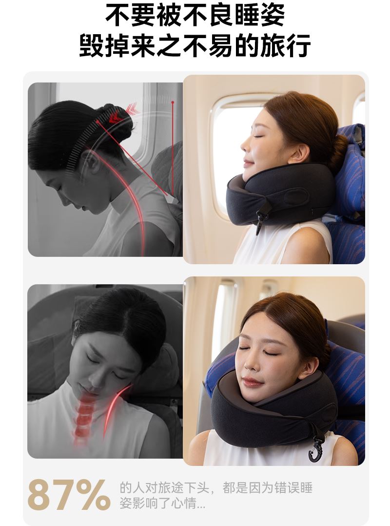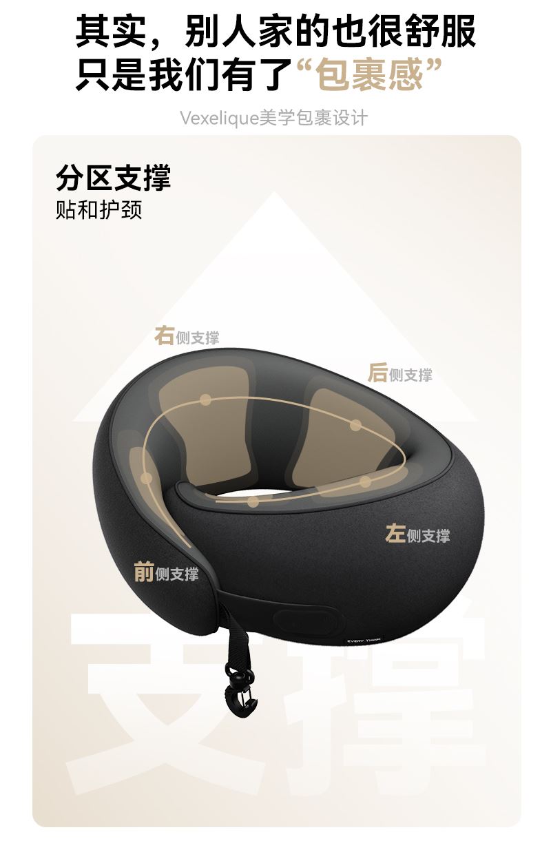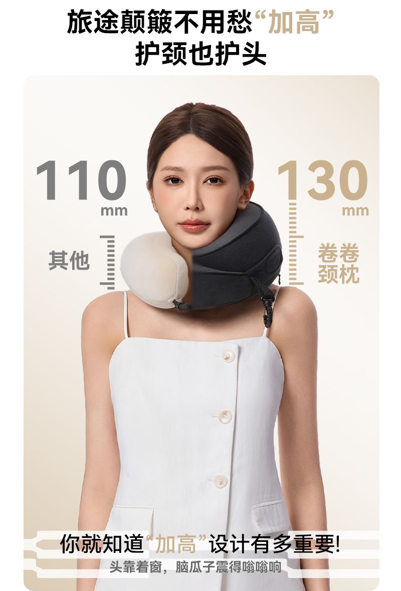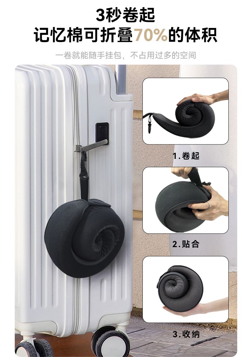 睡洞升级款卷卷颈枕,高弹记忆棉,支撑性更强 挂钩收纳设计,一卷就能随手挂包,不占用过多的空间。 可正戴、反戴,适合不同的支撑需求 分区支撑,贴合护颈,加高护颈支撑面 慢回弹舒压记忆棉枕芯,兼顾舒适度、支撑力、易折叠 全面魔术贴设计,不挑脖围 V型包裹设计,告别“睡觉点头”