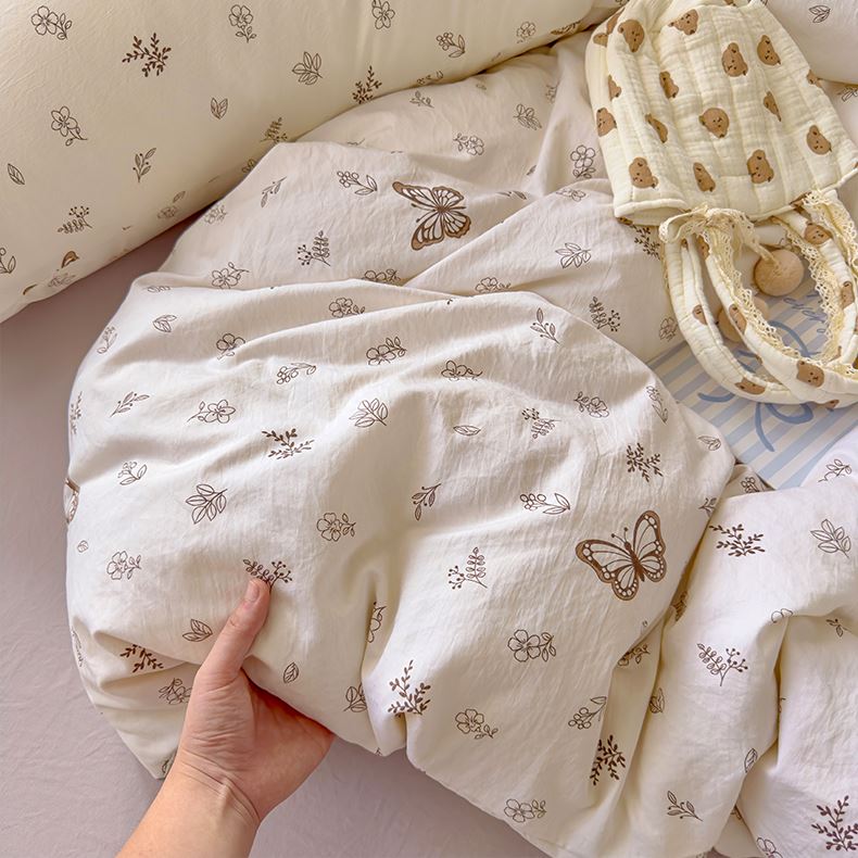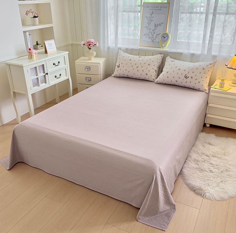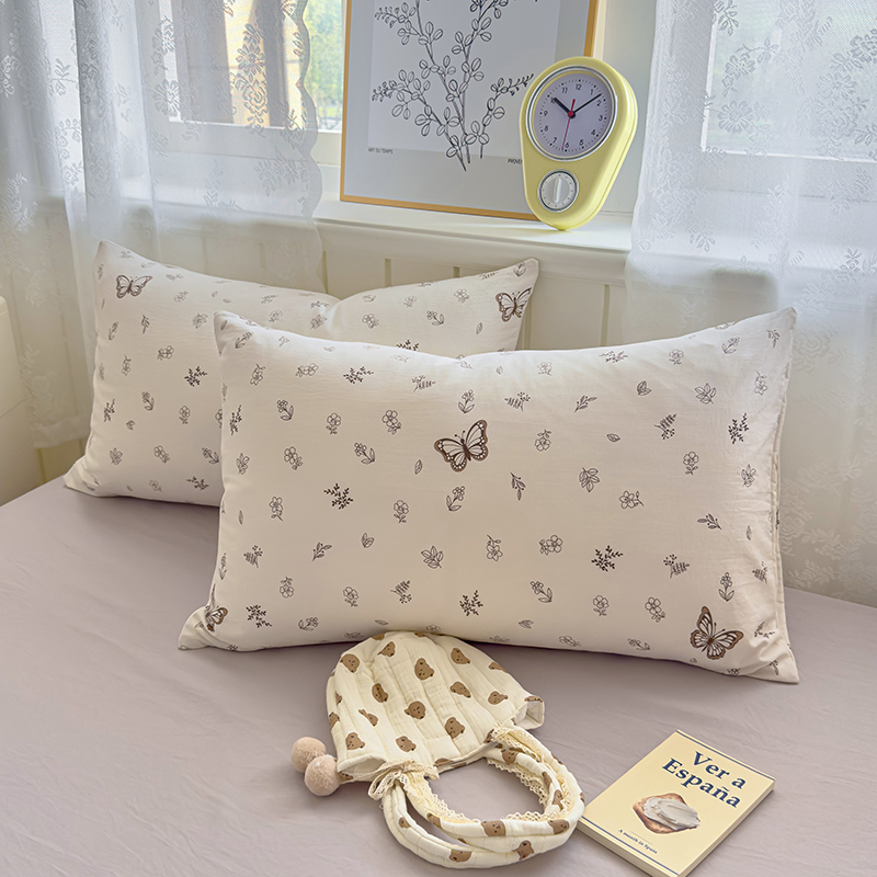 被套:200*230cm 床单:230*245cm 枕套:48*74cm*2 面料材质:双层纱 产品包装:精美礼盒 产品特点: 1.云感双层纱,肌肤感知自然柔软,亲肤细腻睡着舒适,不易起球。 2.时尚印花设计搭配,甜到你的心里,美观大方,起居有你相伴。