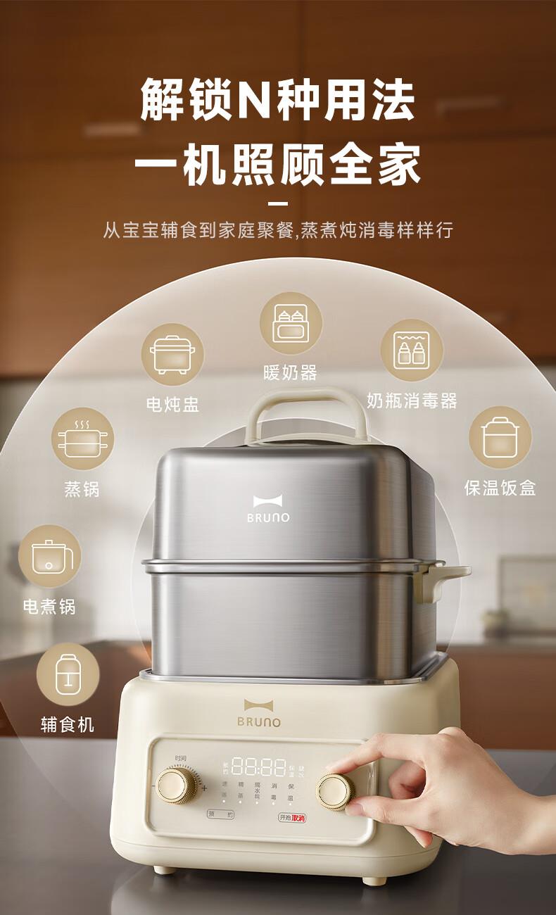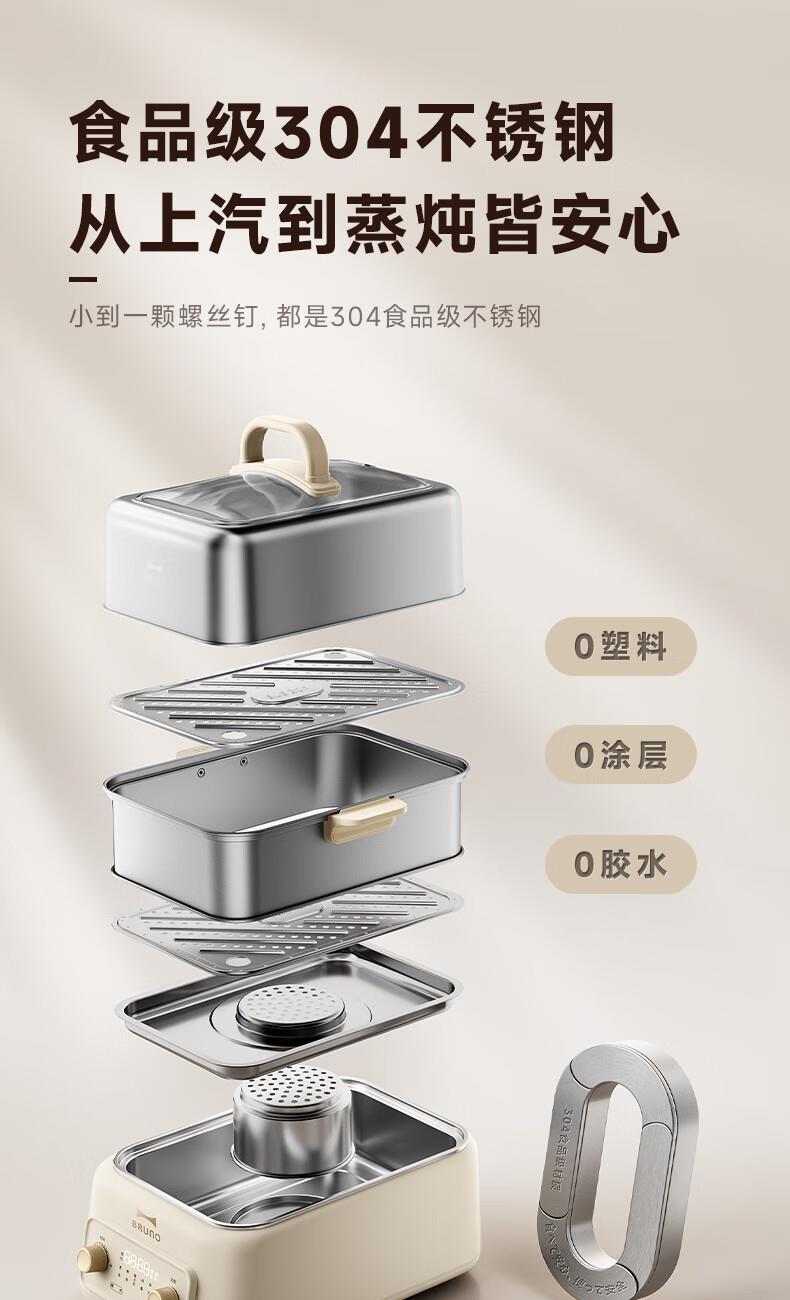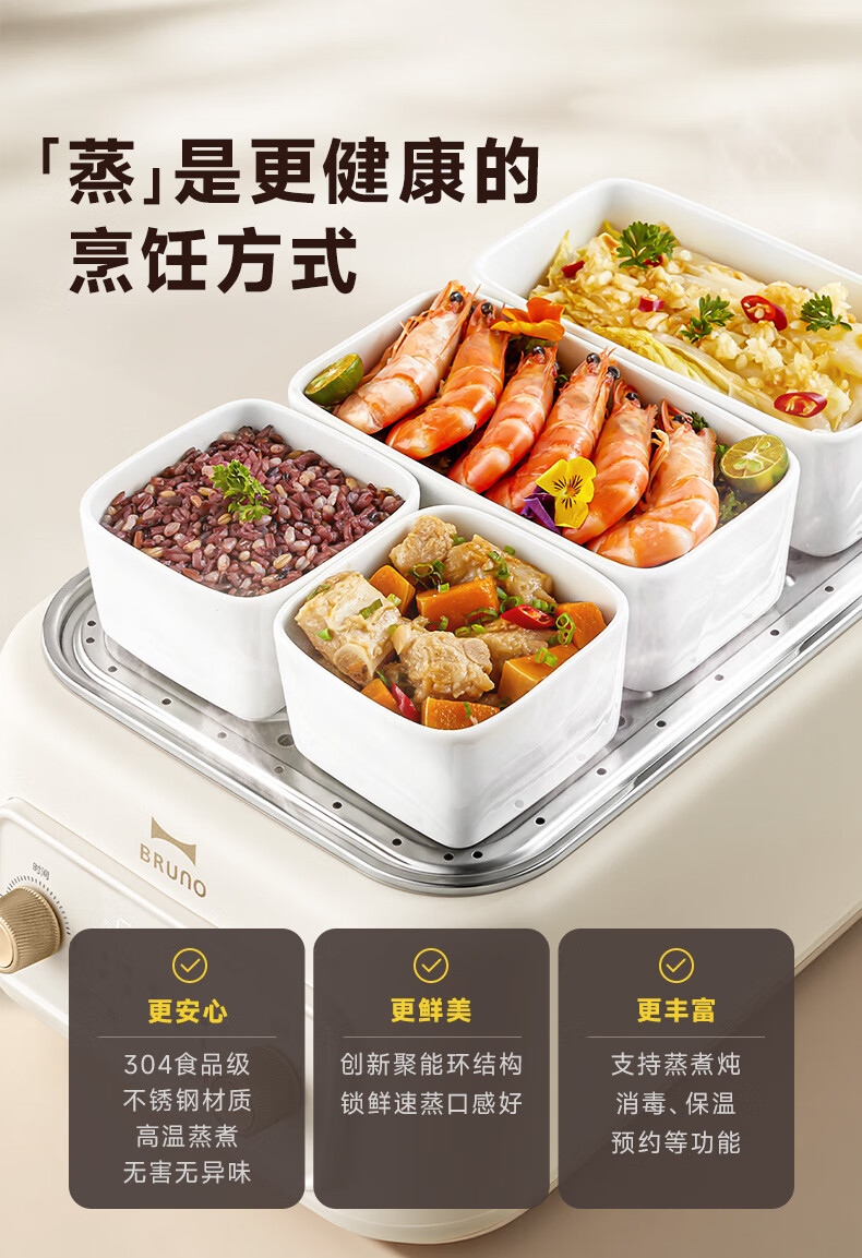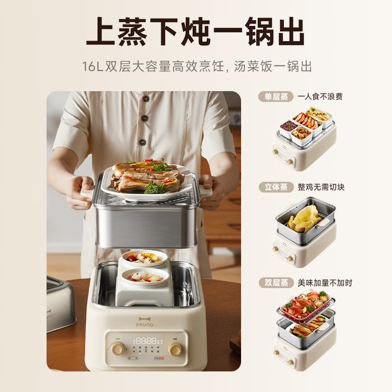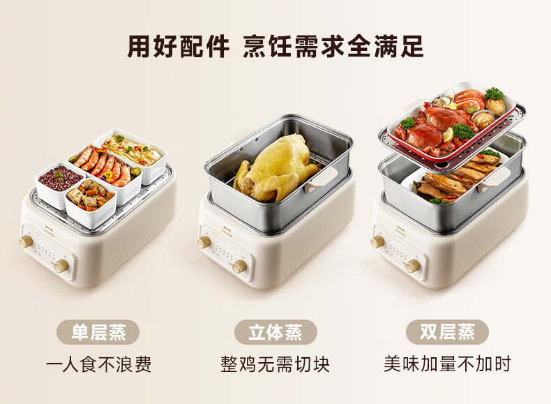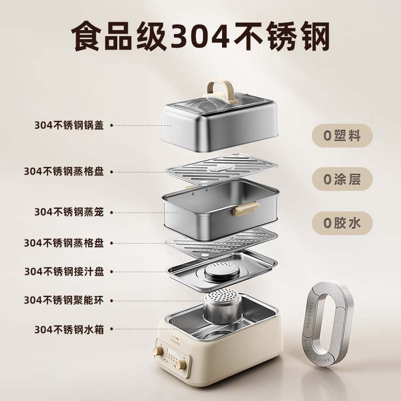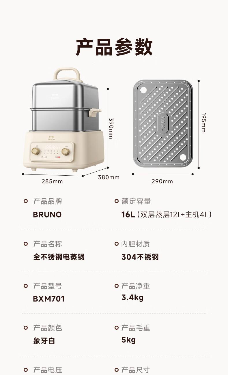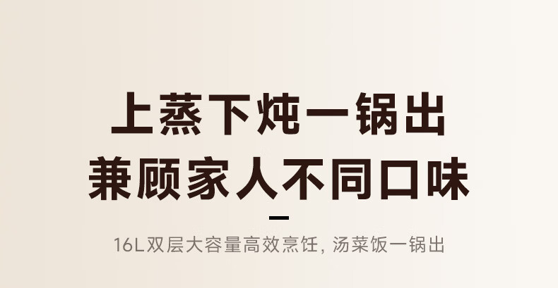 颜色:象牙白 容量:16L(双层蒸屉12L+主机4L) 额定功率:1500W 内胆材质:304不锈钢
