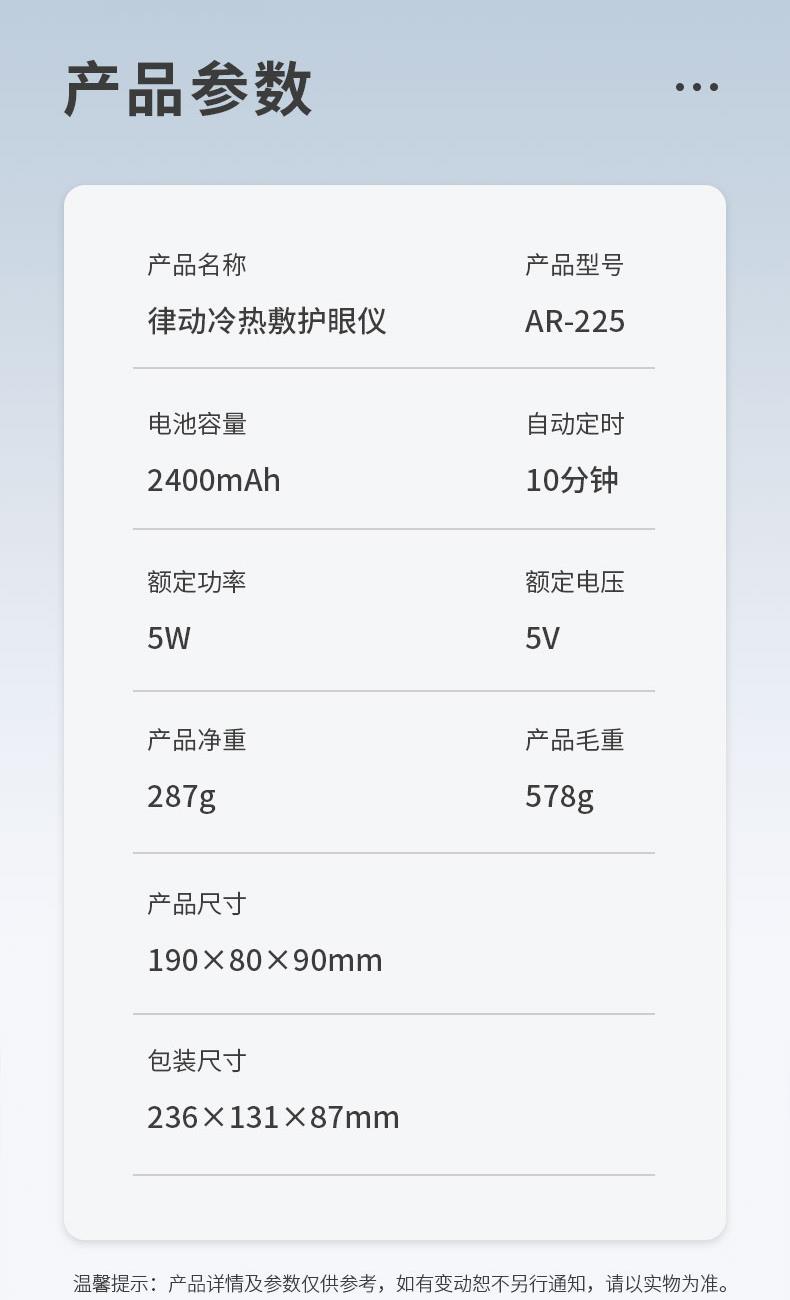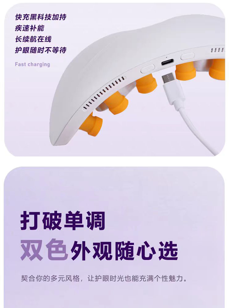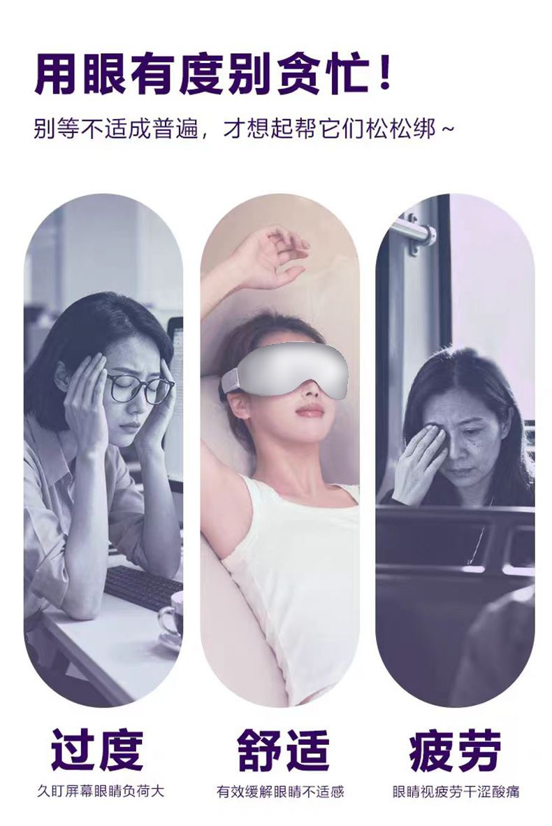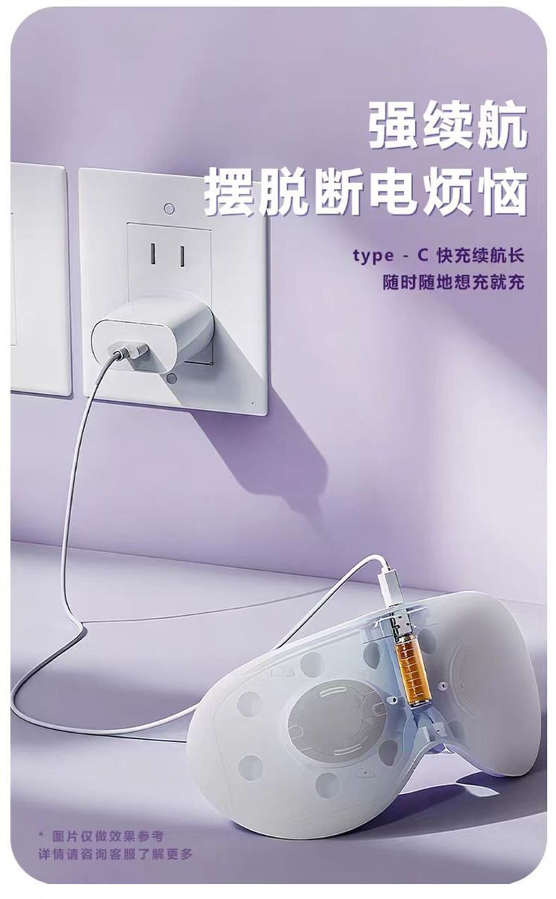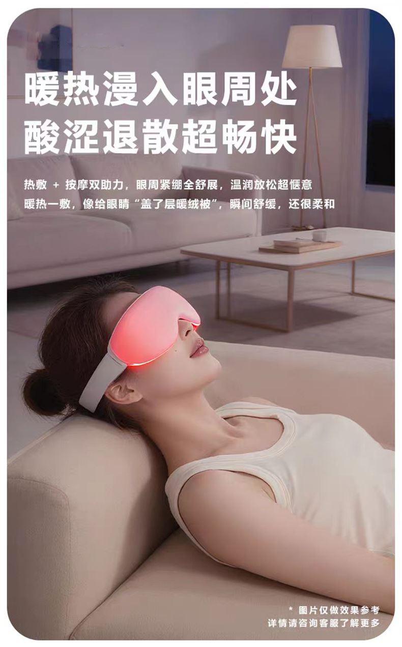 - 轻盈便携,随地“充电”:重量比手机还轻,折叠起来塞进包里毫无压力。办公室午休、差旅途中、追剧间隙都能戴,再也不用专门抽时间去做眼部SPA。