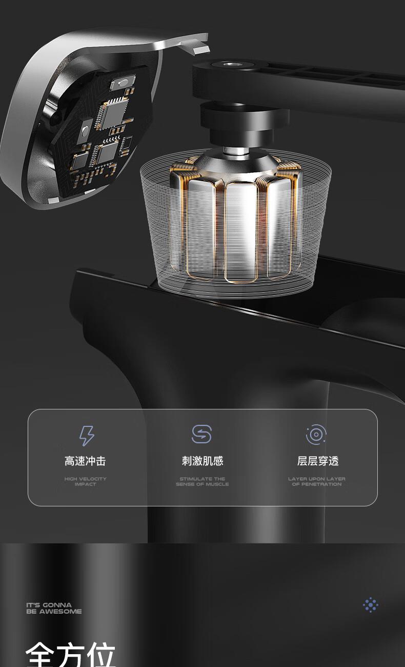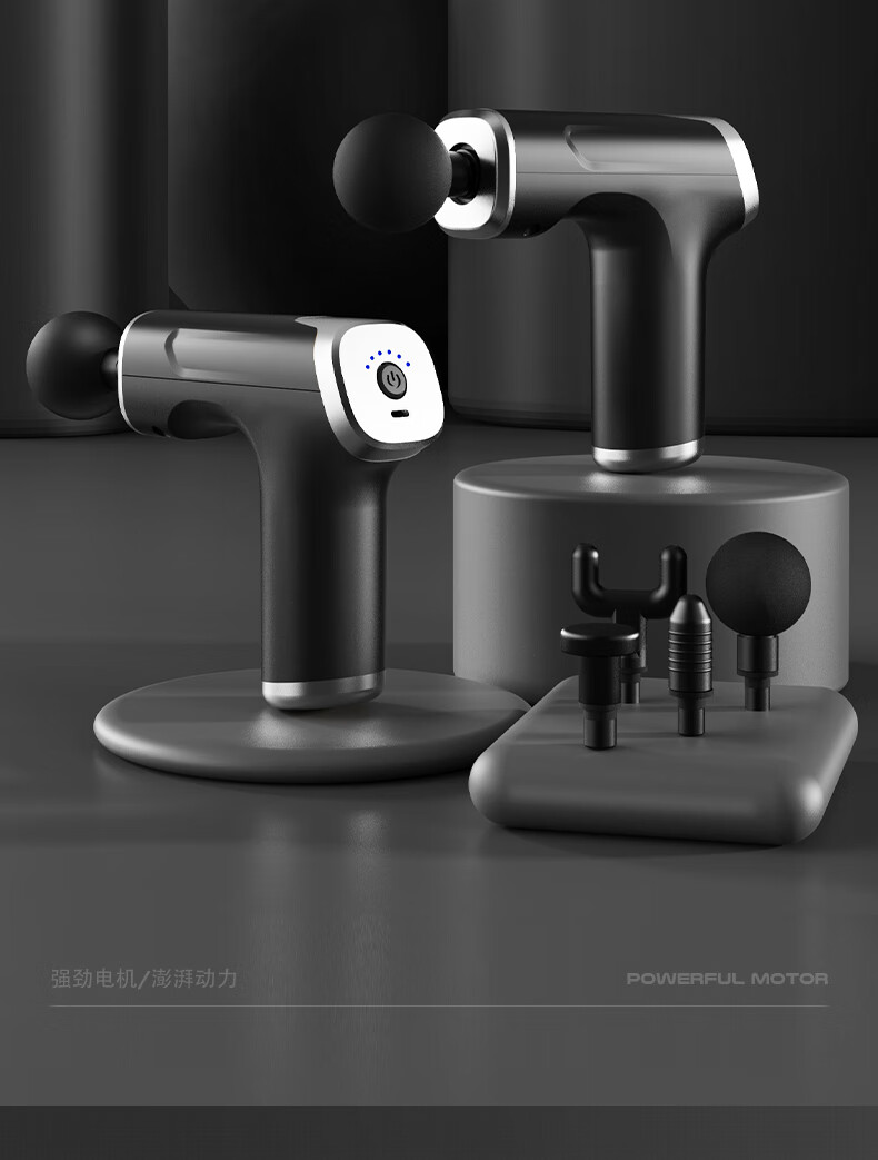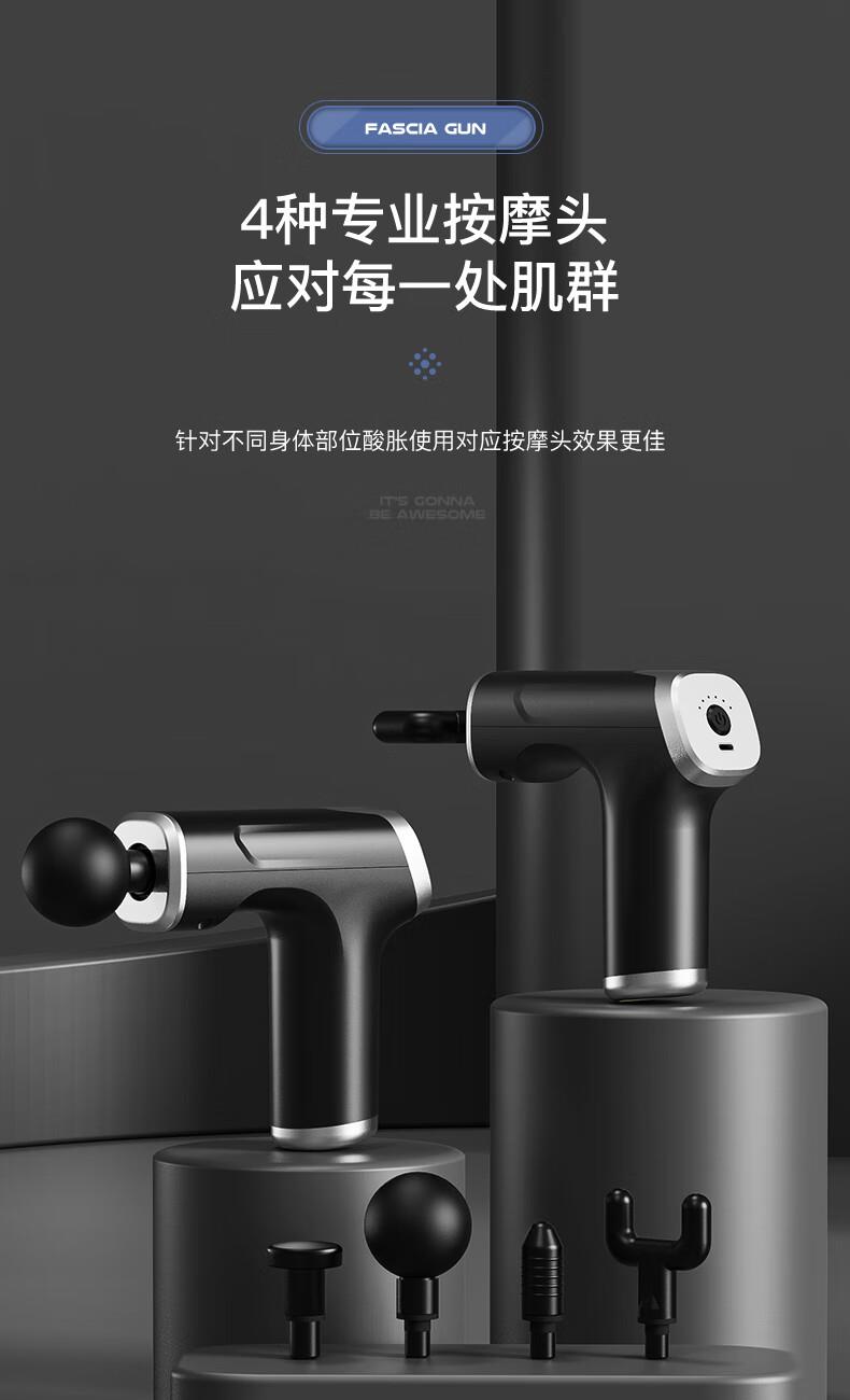 档位:6档调节 材质:ABS材质 按摩头:四个按摩头 续航时机:约2小时 供电方式:可充电锂电池 颜色:黑色 1.耐摔防滑,降低噪音 2.高扭矩大功率无刷电机安全耐用 3.按摩头可以随意切换 4.小巧精致,便于携带
