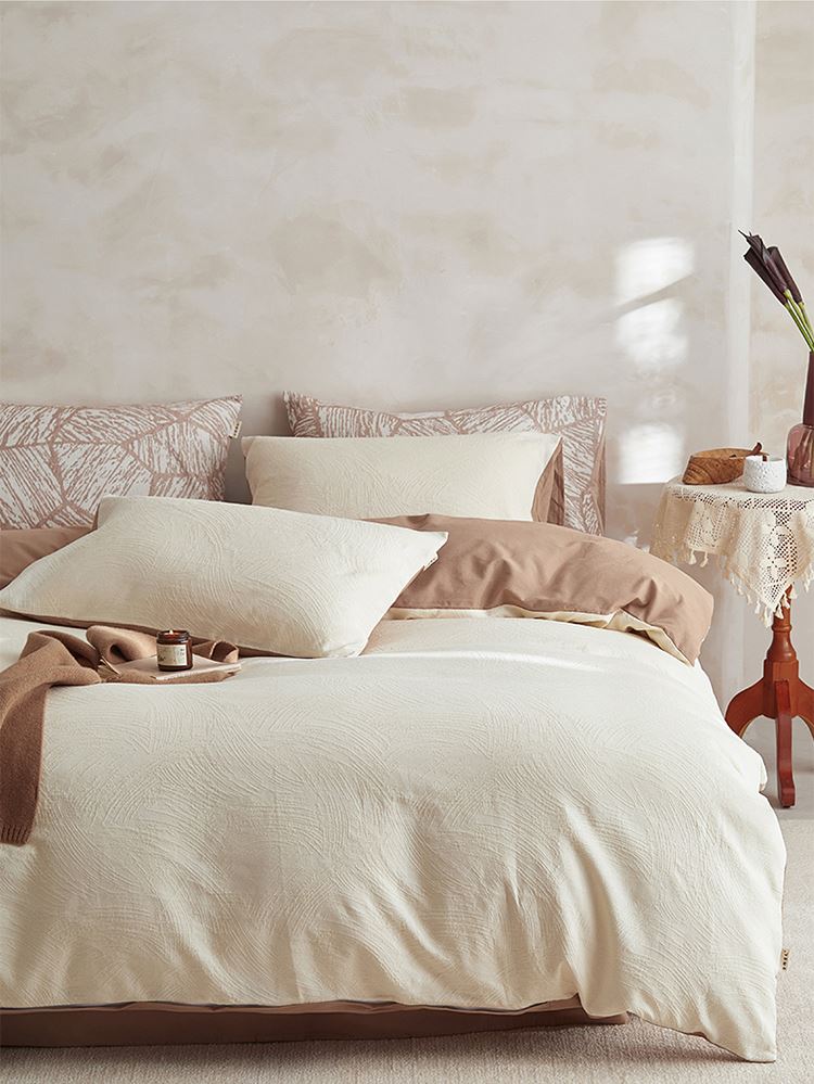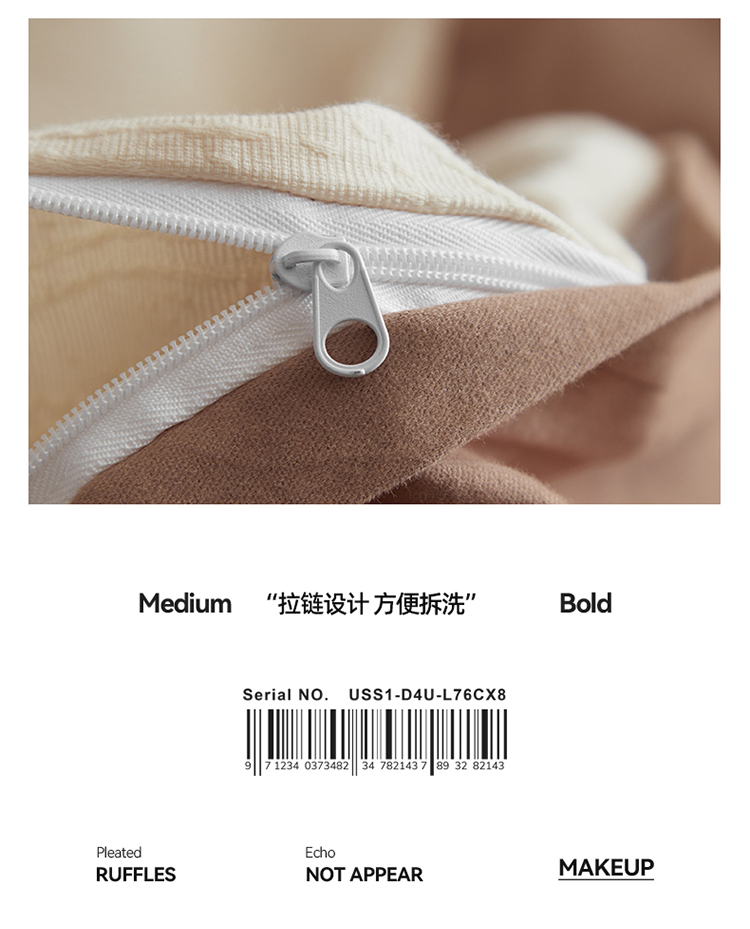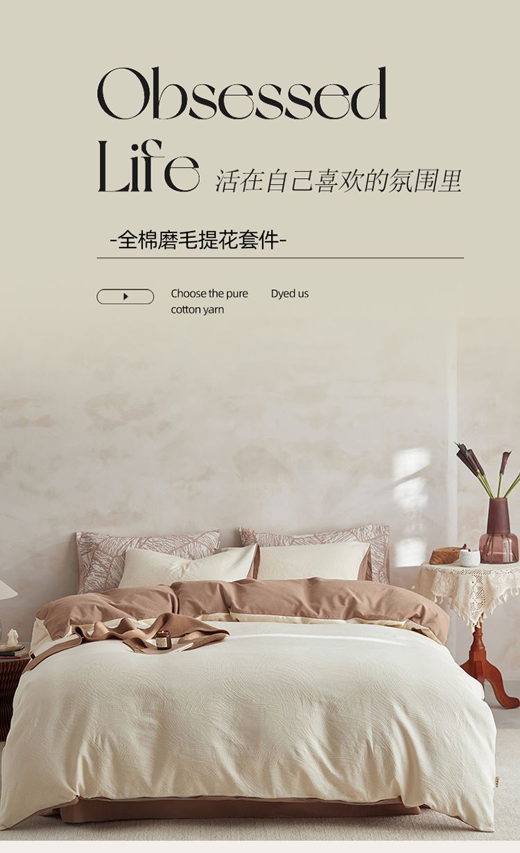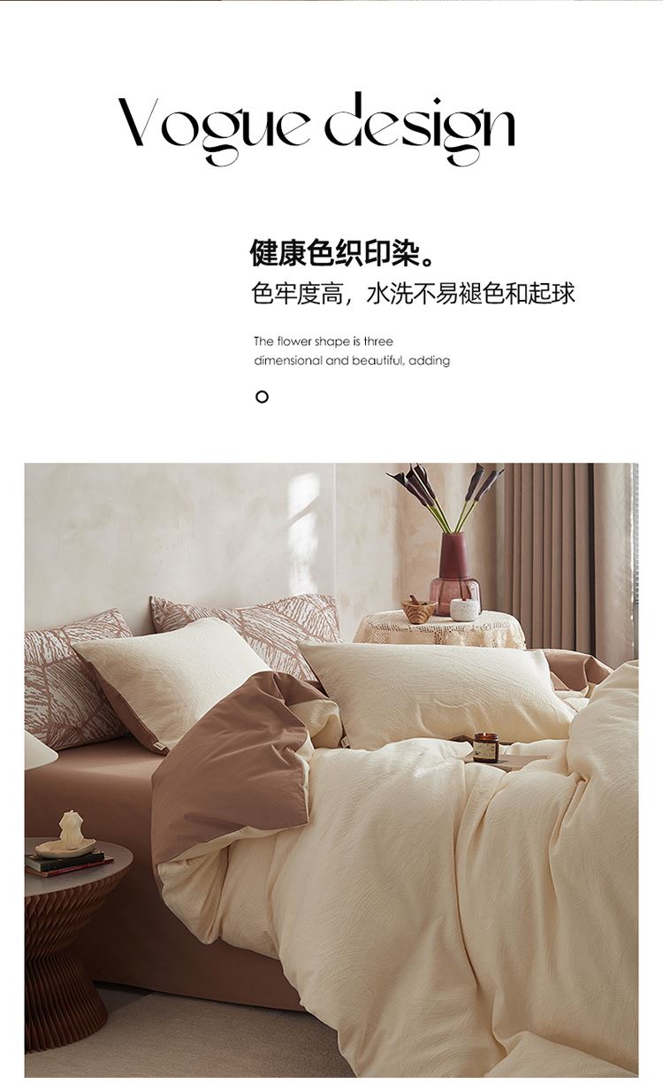 3.精致工艺 : 提花工艺,做工上内缝拷边,做工细致,四角绑带,更好的固定被芯;枕套采用口袋式设计风格,美观大气简约时尚;