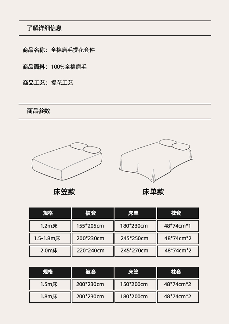 面 料 :全棉提花磨毛