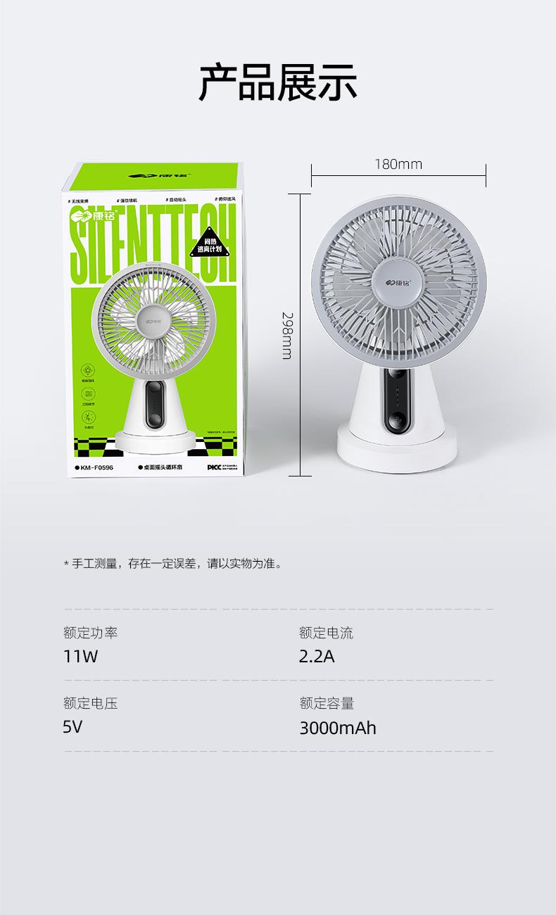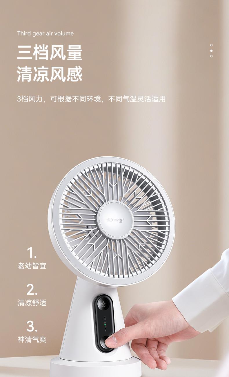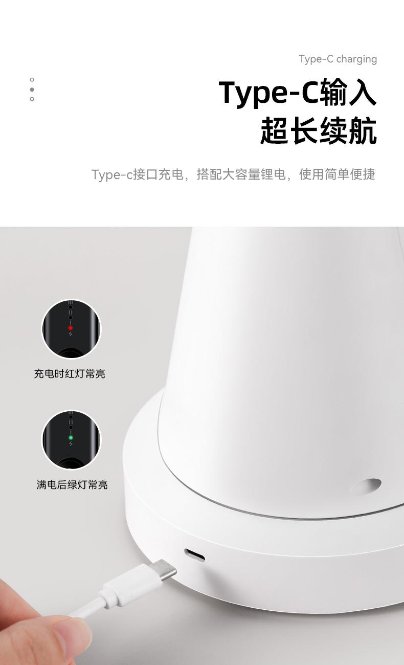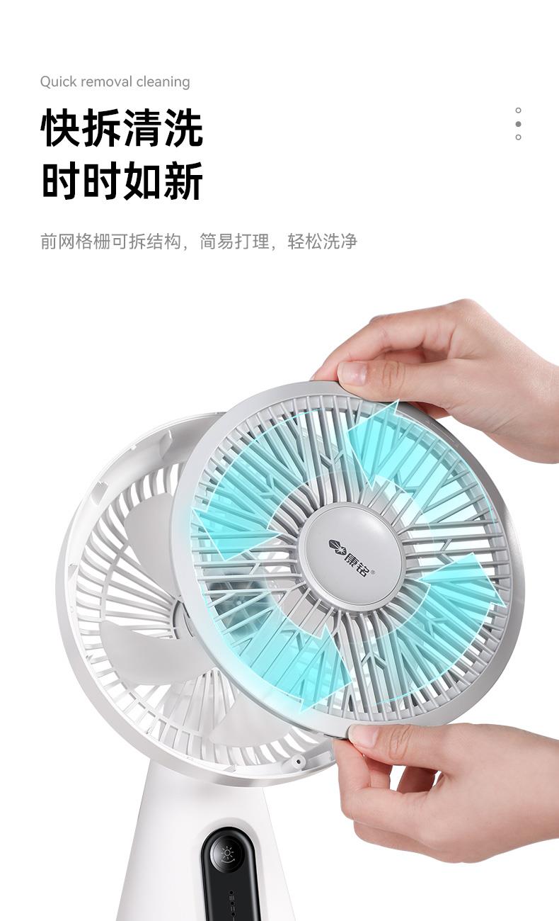 ·90°自动摇头,广角送风 ·强劲风力,轻音送风 ·三档风量,清凉风感 ·小夜灯设计,起夜不摸黑·长效续航,清凉一整晚·Type-C输入,超长续航 快拆清洗,时时如新