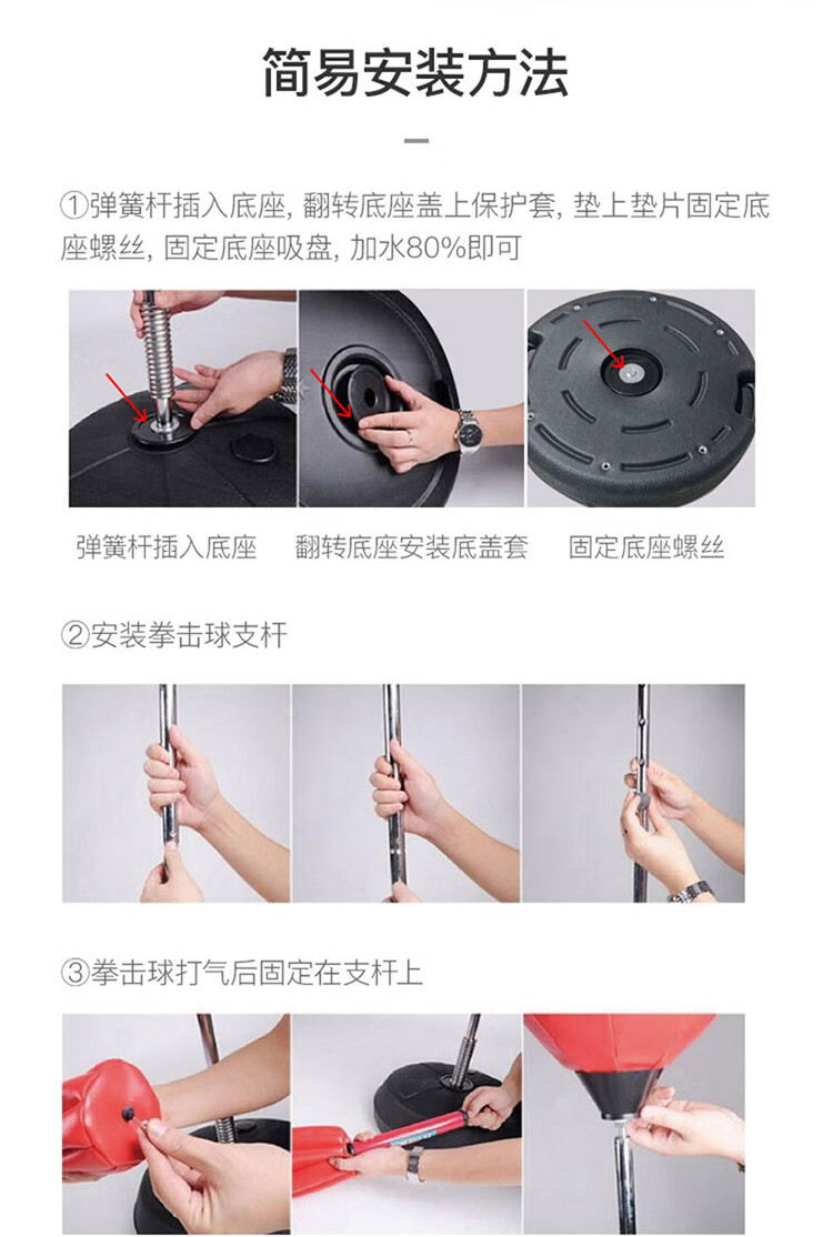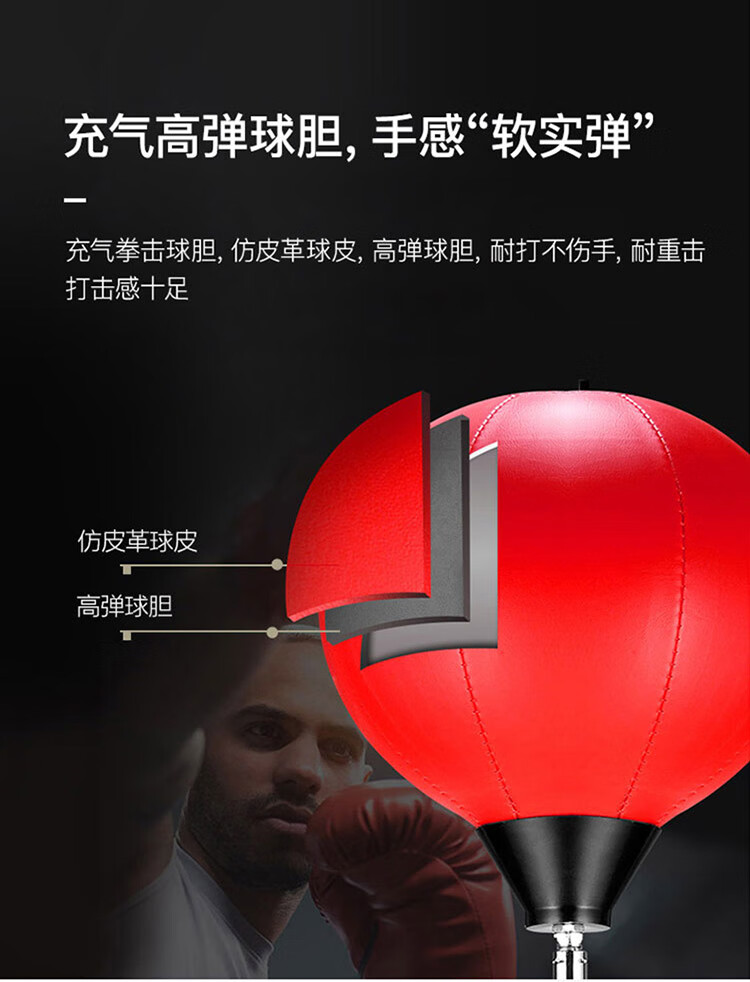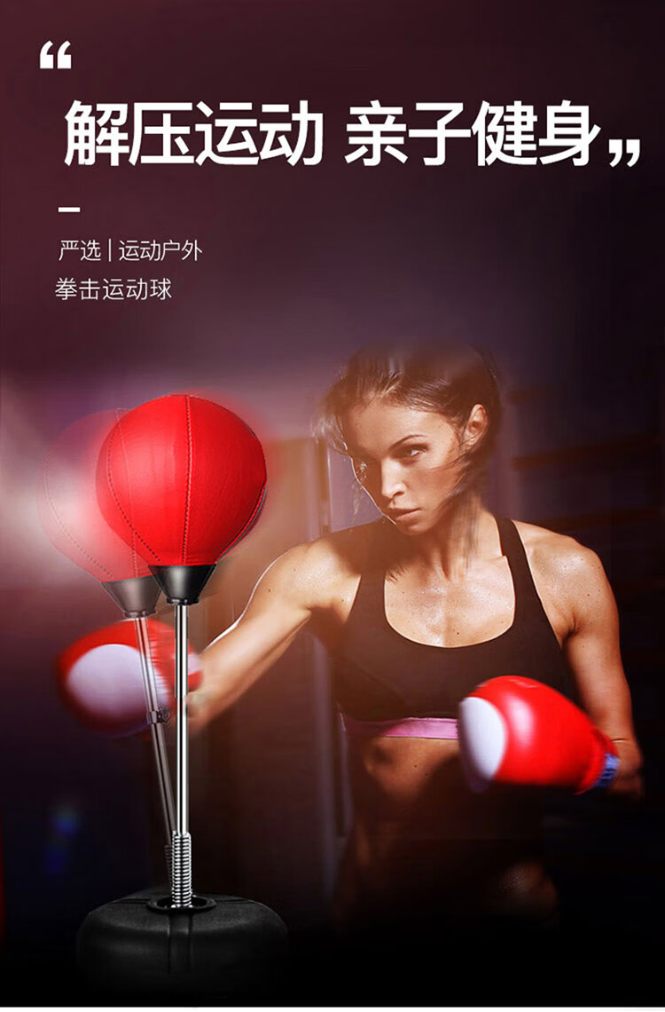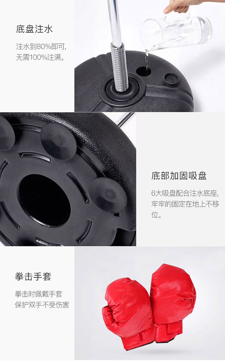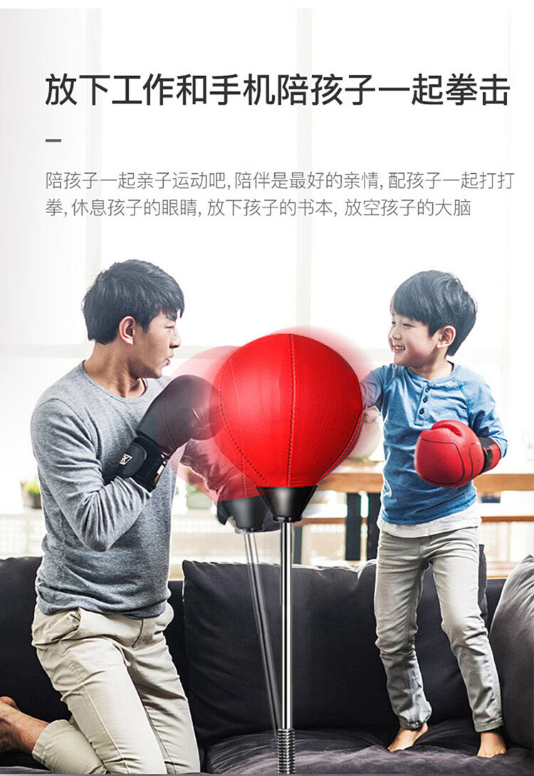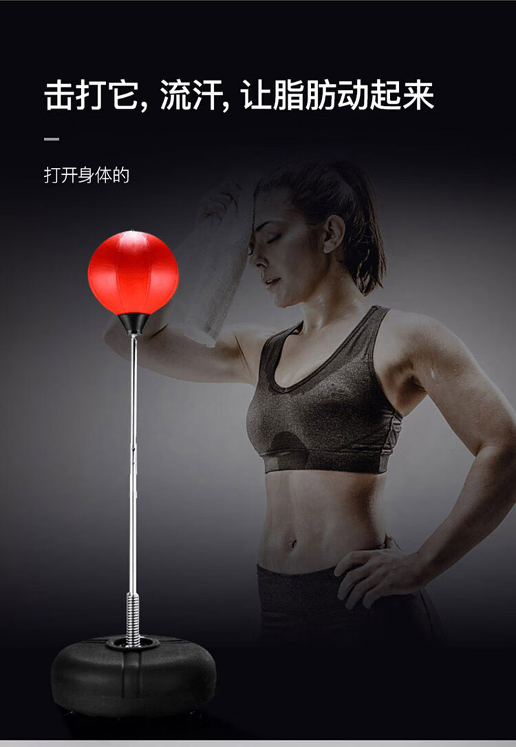 材质: PVC球皮/聚乙烯底座 调节:高度120-160CM 特点:高度可调,各年龄适应 适应人群:儿童、成人、老人 功能释放压力:增强人体力量、耐力 商品毛重:4.4kg 解压运动亲子健身 , 每天运动30分钟 ,充气高弹球胆, 手感“软实弹” 360度万向回弹,复位迅速,高度可自由调节。不锈钢加厚弹簧,底盘注水底部加固吸盘,锻炼孩子的专注力,主动出击,减压发泄 亲子娱乐,燃烧卡路里。