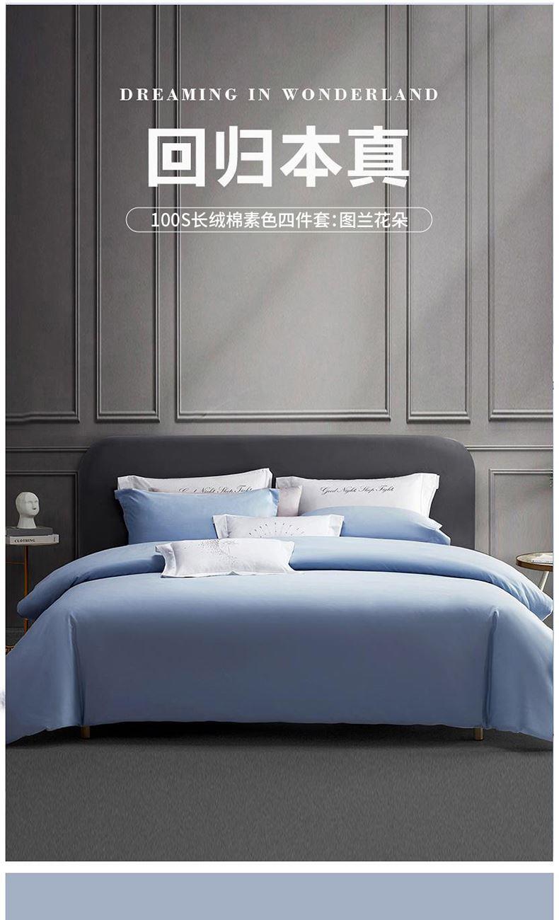 梦洁-100S长绒棉素色四件套:图兰花朵1010189139