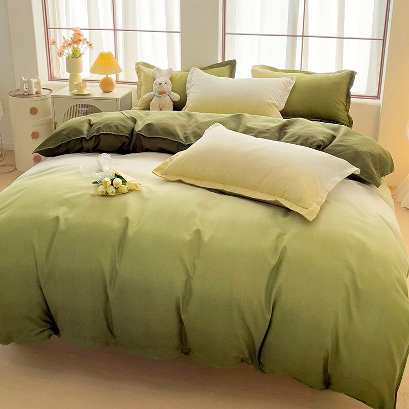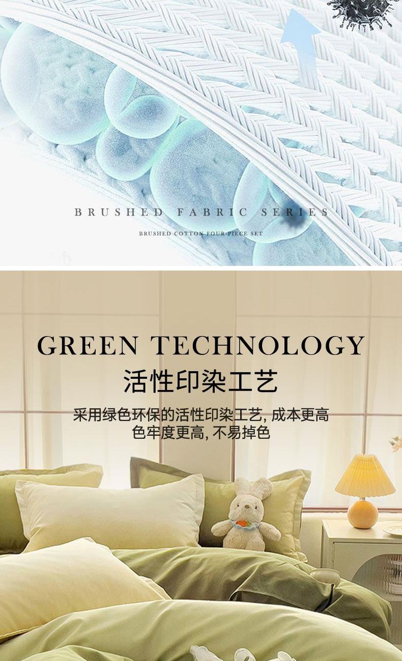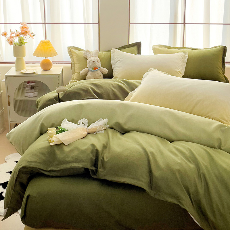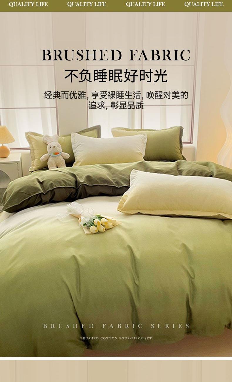 <赫兰希>ins风斜纹磨毛四件套-青野