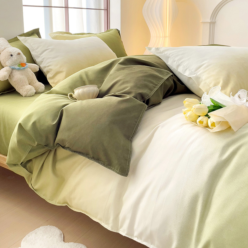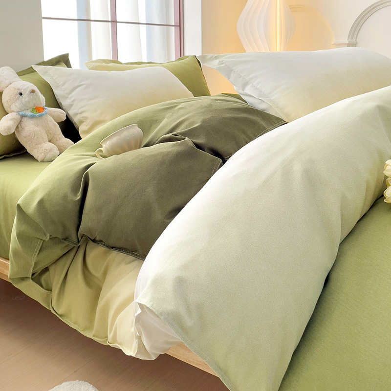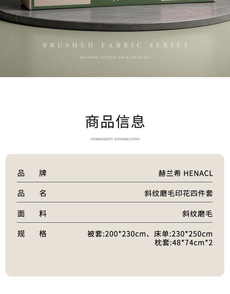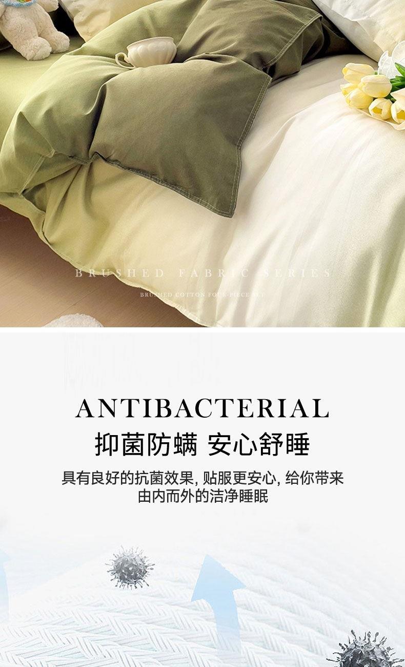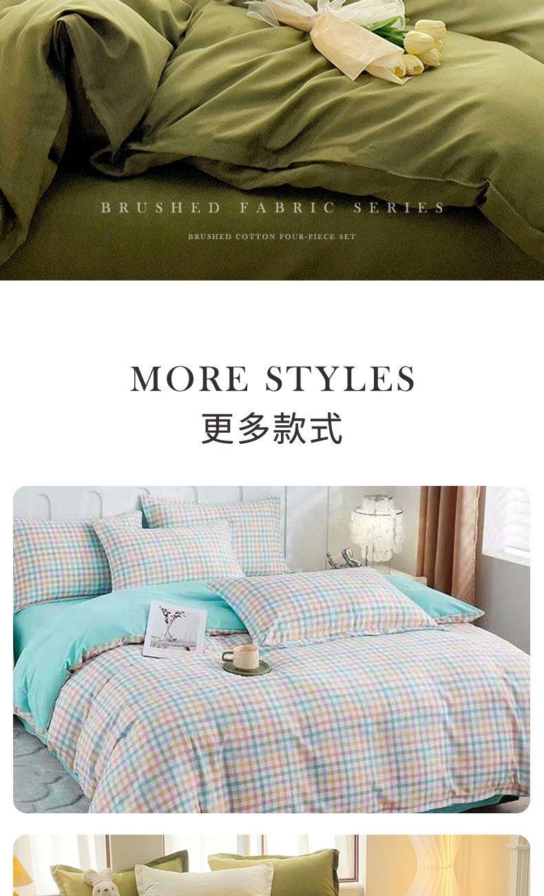 <赫兰希>ins风斜纹磨毛四件套-青野