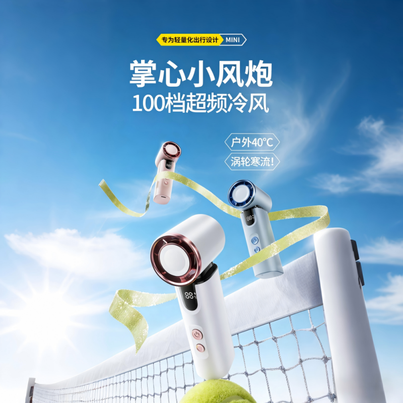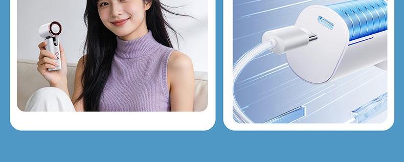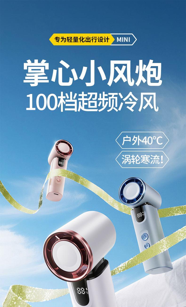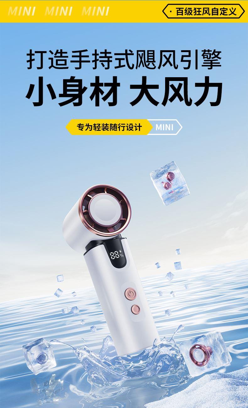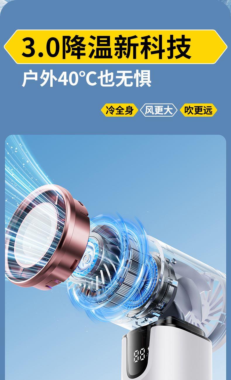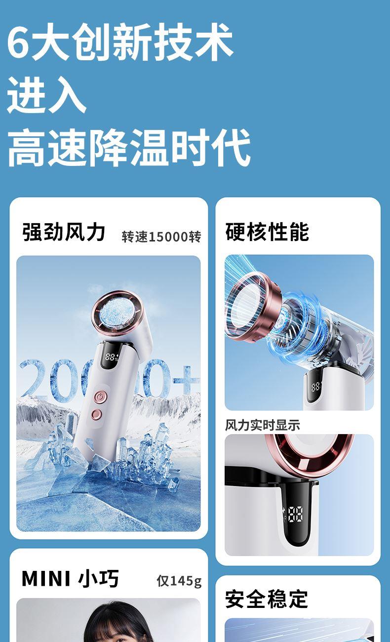 *半导体制冷冰敷降温,3000毫安 *智能数显,100档涡轮强劲动力 *15000转快速降温,全场景便携 *支持小批量定制LOGO