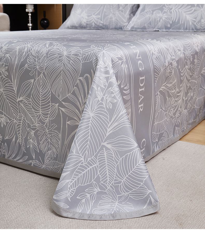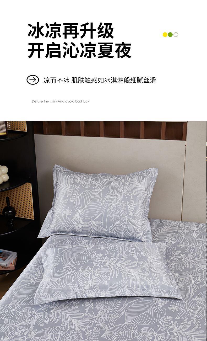 凉席:230*250cm*1 枕套:48*74cm*2 面料:冰丝提花 产品特点: 1.选用冰丝纤维,机洗折叠不变形。 2.物理凉感,凉而不冰,提花色织工艺,久用如新。 3.精美图案,健康环保。可手洗机洗不易褪色。