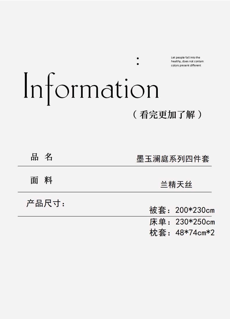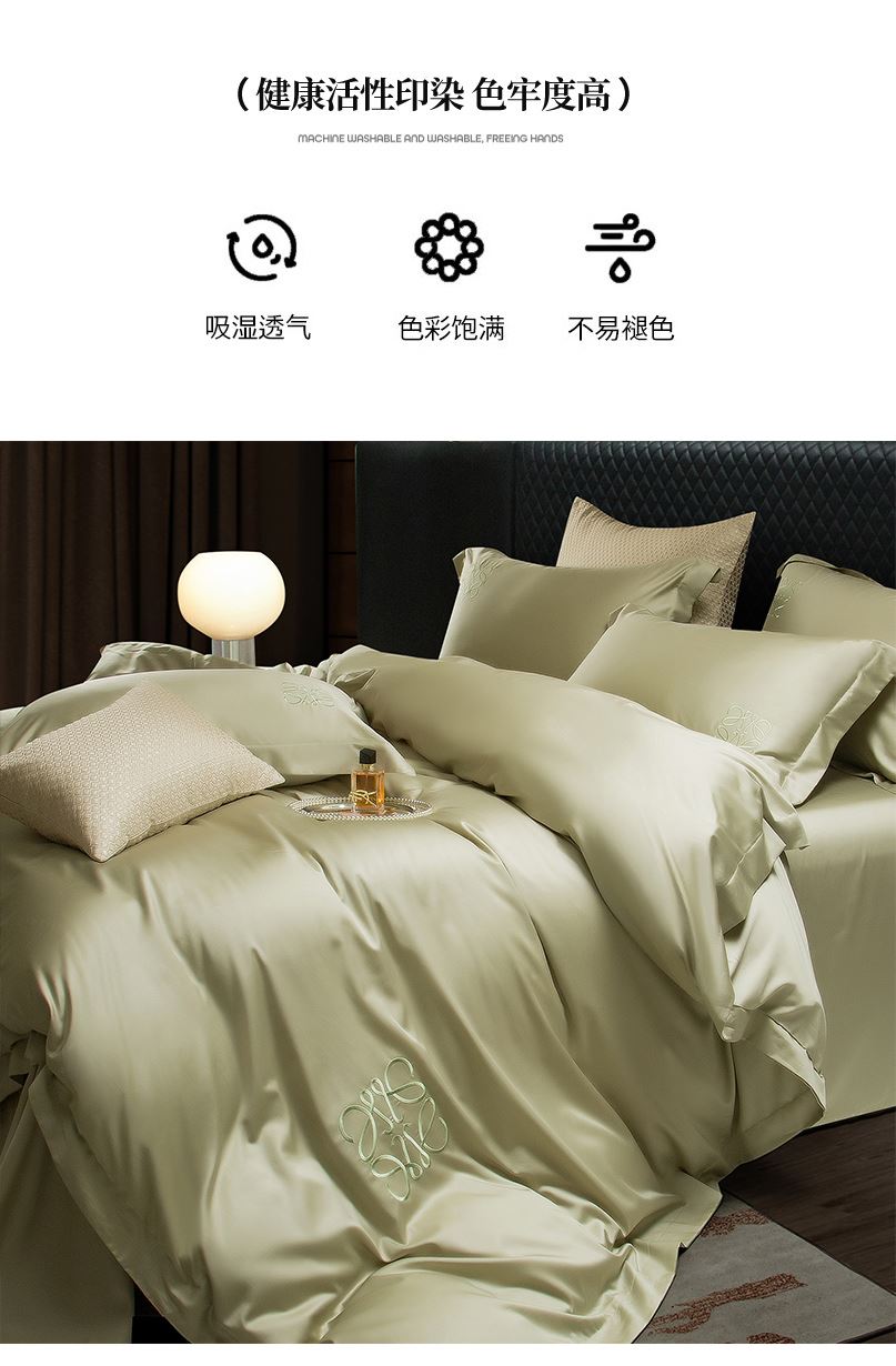 被套:200*230cm 床单:230*250cm 枕套:48*74cm*2 面料: 兰精天丝 产品包装:精美礼盒 产品特点: 兰精天丝面料似乎注定就为盛夏而生,清爽飘逸垂坠丝般的光泽具有湿气管理功能,可自然地吸收和释放人体湿气亲和肌肤,提供持久的舒适感受,持久柔软、抑制细菌滋生色泽稳定持久亮丽即使经过多次洗涤也不易褪色。