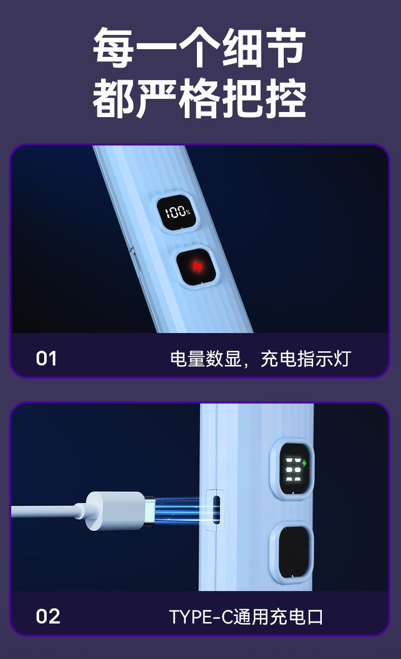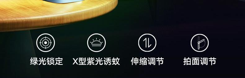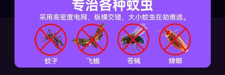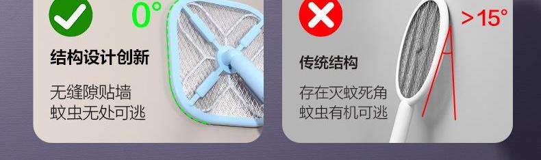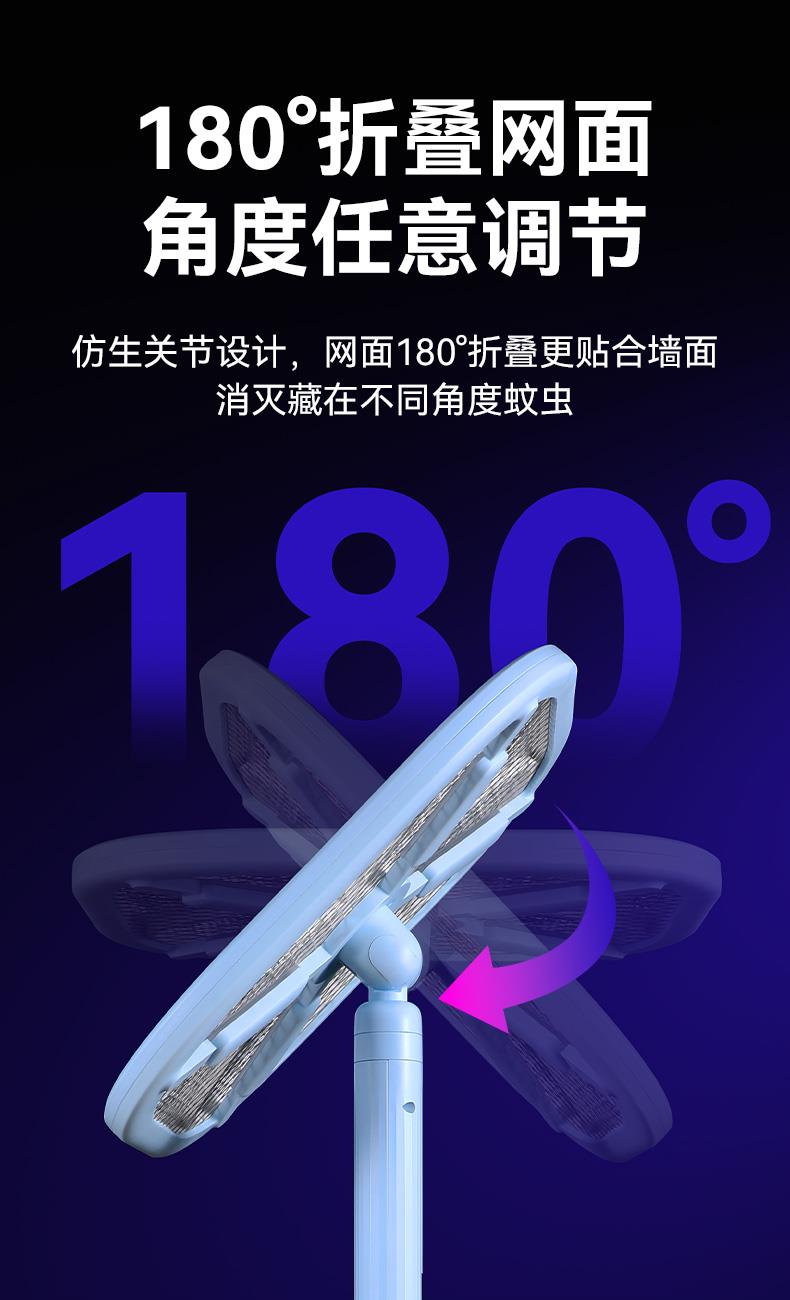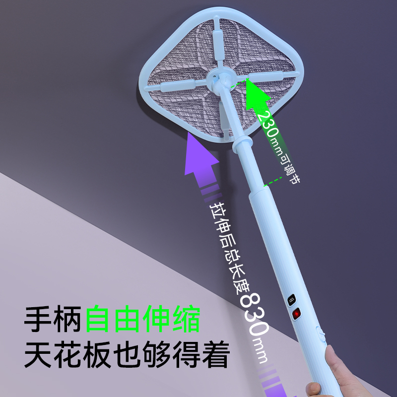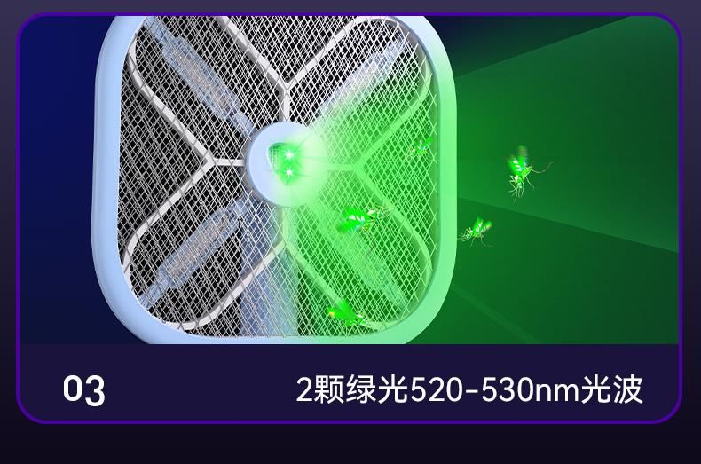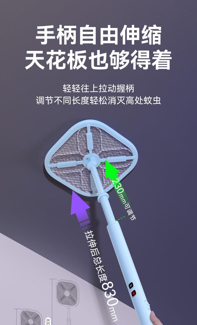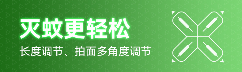 X型诱蚊新技术,灭蚊更见效; ·12颗紫光诱蚊灯,2颗绿光寻蚊灯; ·手柄长度调节,轻松灭蚊; ·拍面可180°调节; ·4000V瞬间高压; ·秒放余电,更安全; ·数字电量显示; ·Type-C口充电;